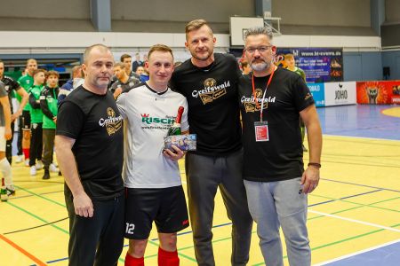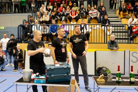 Neben dem Sportlichen gab es aber am gesamten Wochenende auch noch ein großartiges Rahmenprogramm. Zum einen haben die Organisatoren ein großartiges Traditionsshirt anfertigen lassen, das das gesamte Wochenende zum Verkauf stand. Passender hätte es für das Wochenende nicht sein können, wurde doch eine alte Tradition wieder ins Leben gerufen. Das Shirt ist schwarz und hatte alte Logos in Gold aufgedruckt. Und außerdem gab es noch eine große Tombola, die am Finaltag ausgeschüttet wurde. Es gab Gutscheine, tolle Shirts von Tiles Art, Goodies von E&N und auch unterschriebene Trikots unserer Regionalligamannschaft. Einer der glücklichen Gewinner war unser Ex-Spieler Lukas Knechtel. Jacob Cement warf zudem noch einen Makita Bohrschrauber für den Zweitplatzierten rein. Der Hauptpreis war ein Bosch Akkubohrschrauberset – gesponsert vom Handelshof Vorpommern – das an einen weiblichen Fan des SV 90 Görmin ging. Die Freude war beim schrillen Aufschrei nach Nennung der Losnummer klar zu hören. Herzlichen Glückwunsch an die Gewinner! Die Plätze 5-8 wurden in dem Rahmen im Neunmeterschießen ermittelt. Dort erreichte Blau-Weiß Greifswald den siebten Platz vor Lubmin und die HSG Uni Greifswald sicherte sich zumindest Platz fünf vor dem FC Landhagen.