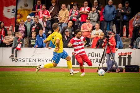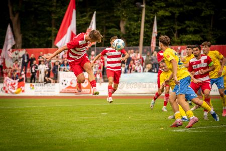 Trainer Zschiesche reagierte zur Pause und wechselt Eder für Vierling ein. Der neue Mann stand auch direkt im Mittelpunkt. Sein Freistoß aus 25 Metern wurde abgefälscht und landete deshalb knapp neben dem Tor. Die anschließende Ecke köpfte der Innenverteidiger aus wenigen Metern über den Kasten (53.). Offensiv fiel unseren Jungs gegen eine sicher stehende Defensive dann aber nicht mehr viel ein. Stattdessen landete ein Befreiungsschlag der Brandenburger bei Bachmann, der plötzlich frei vor Jakubov auftauchte und den Ball mit der Innenseite ins Tor beförderte – 0:2 (68.). Es war der Knackpunkt. Doch der GFC schöpfte in der 79. Minute nochmal Hoffnung, als Jannene für ein Foul an Günay die gelb-rote Karte sah. Wirklich gefährlich wurde es aber nur noch bei Wagners Versuch aus der Distanz, der aber erneut vom stark aufgelegten Palmowski entschärft wurde (90.).