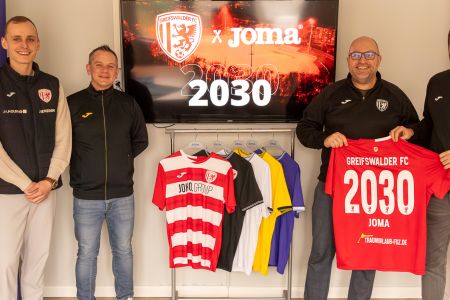 Der Greifswalder FC und der spanische Teamsportausrüster Joma setzen ihre erfolgreiche Zusammenarbeit fort. Die seit Sommer 2022 bestehende Partnerschaft wird vorzeitig um weitere vier Jahre verlängert und läuft damit nun bis zum Jahr 2030.
