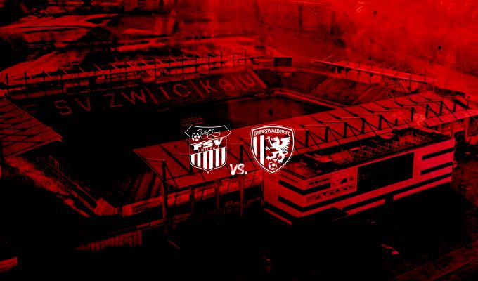 Mit der gleichen Startelf wie im letzten Ligaspiel gegen den Berliner AK ging unser Greifswalder FC ins Flutlichtspiel beim FSV Zwickau. Die erste Halbzeit, sie sollte schon sehr ereignisreich werden. Die Gastgeber hatten sich was vorgenommen und waren bereits nach sieben Minuten vor unserem Tor. Schmedemann fälschte eine Hereingabe gefährlich auf das eigene Tor ab, Jakubov aber war da. Der Kopfball im Anschluss an die nachfolgende Ecke klatschte dann etwas überraschend gegen die Latte. Nach zehn Minuten hatte aber auch unser GFC seine erste Gelegenheit. Eine Ecke von der linken Seite fand den Kopf von Jannis Farr, der auf Eglseder legte. Aus etwa fünf Metern köpfte unser Innenverteidiger allerdings drüber. Die bis dahin größte Chance hatte dann aber wieder Zwickau, das nach 17 Minuten zunächst einen Kopfball durch Frick auf das Tor brachte, Jakubov konnte ihn nach vorne klären. Da aber stand Zimmermann, schloss ab, der sich in den Weg schmeißende Schmedemann aber verhinderte den Rückstand! Dann wurde es wild. Theo Martens grätschte am eigenen Strafraum gegen Coskun, gab unserem Linksverteidiger danach noch ein paar Worte mit. Niklas Brandt ging dazwischen, woraufhin sich der Ex-Rostocker Martens fallen ließ. Hierfür gab es dann die harte Entscheidung des Platzverweises gegen unsere Nummer acht. Oliver Daedlow ersetzte daraufhin aus taktischen Gründen Jorik Wulff. Umso wichtiger die 37. Minute, als Can Coskun erneut über die linke Seite sprintete, einen letzten Haken im Strafraum in Richtung Grundlinie machte, den Ball in die Mitte legte und damit Guido Kocer bediente. Unser Routinier war perfekt eingelaufen und musste nur noch zum 1:0 aus unserer Sicht einschieben! In den letzten Minuten der ersten Hälfte versuchte Zwickau nochmal auf den Ausgleich zu drängen und hatte auch durch einen Kopfball von Zimmermann und einem Weitschuss von Martens die Möglichkeiten, Jakub Jakubov aber brachte die Führung in die Kabine.