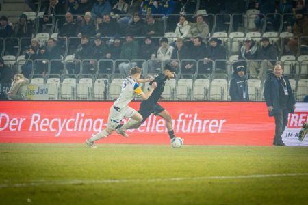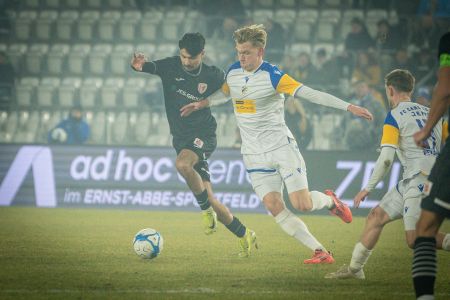 Auch nach der Halbzeit brauchte die Partie etwas Anlaufzeit, aber dann wurde es umso ansehnlicher. Ndualu setzte sich auf dem rechten Flügel durch, dribbelte in den Strafraum und bediente Benyamina. Unser Torjäger versenkte den Ball unter höchstem Gegnerdruck im Tor (54.). Der Treffer sorgte jedoch nicht für die erhoffte Befreiung, denn unsere Jungs wurden etwas passiver. Jena hatte viele Offensivaktionen und Standardsituationen in den gefährlichen Zonen. Und so fiel dann auch der Ausgleich: Abu El Haija nutzte seinen Größenvorteil am zweiten Pfosten aus, köpfte ins Zentrum zu Tattermusch, der nur noch den Kopf hinhalten musste (70.). Nach dem Ausgleichstreffer wachte unser Team wieder etwas auf und bekam mehr Ruhe ins Spiel. Kratzer hatte sogar noch die große Chance auf das 2:1, doch wieder war Liesegang mit einer Rettungstat zur Stelle (85.). Es war die letzte gefährliche Aktion in einem Spiel, das das Team von Trainer Zschiesche auch hätte gewinnen können. Trotzdem ist das Unentschieden auch nicht unverdient.