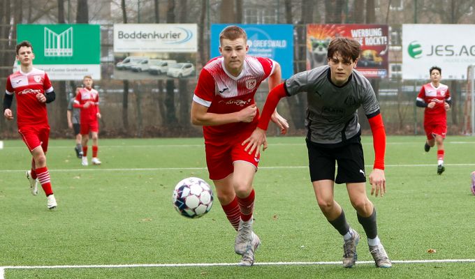 Gestern Nachmittag haben wir das Halbfinale erreicht und schon heute wissen wir wer unser Gegner ist - der FSV Kühlungsborn. Jan Didjurgeit kündigte Joachim Masuch als Losgott an und der LFV-Ehrenpräsident legte gleich mal los wie die Feuerwehr. Als erstes Team zog er unseren Greifswalder FC, der als Klassenhöchster auf jeden Fall ein Auswärtsspiel bekam. Aus der zweiten Kugel holte Masuch dann den Verbandsligisten FSV Kühlungsborn, der im Viertelfinale einen 2:1-Heimsieg gegen den FSV Bentwisch feierte. Das zweite Halbfinale hat es ebenfalls in sich und hat auch mit unserer jüngsten Pokal-Vergangenheit zu tun. Im Vorjahr unterlagen wir im Halbfinale in Ueckermünde. Die SpVgg Torgelow Ueckermünde trifft nun in der Gießerei Arena auf die TSG Neustrelitz, die wir noch aus dem Finale in der Saison 21/22 kennen. Damals mussten wir uns im Elfmeterschießen geschlagen geben. In diesem Jahr "wollen wir den Pokal aber in Greifswald in den Himmel strecken", so unser Cheftrainer Lars Fuchs nach dem Spiel in Schönberg. Dafür müssen aber eben noch zwei Siege her. Zuerst im Halbfinale, das am 1. Mai um 14 Uhr in Kühlungsborn stattfindet. Ticket- und Faninfos werden wir nun mit dem Verbandsligisten besprechen und Euch dann schnellstmöglich informieren.