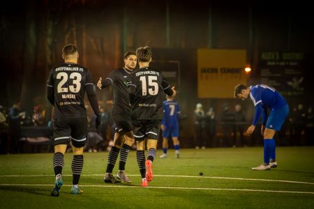 Es ging los mit dem frühen Freistoß für die Gäste nach Foul an Frühauf. Der Gefoulte trat aus rund 20 Metern selbst an, aber weder sein Ball noch der Nachschuss führten zum Erfolg. Nur wenig später gab es die erste Ecke für unseren GFC. Vogt brachte diese gut in den Strafraum, wo Bolyki hochstieg, aber ein guter Reflex von Gästekeeper Krause verhinderte die frühe Führung. In der neunten Minute war es dann aber doch das 1:0: Nach gutem Pressing unseres GFC und Ballverlust der Gäste war es Kratzer, der zur frühen Führung einschob. Und auch in der Folgezeit spielte vor allem der Greifswalder FC. Nachdem Vogt in der 18. Minute aus 16 Metern noch Pech mit seinem Abschluss hatte, da Krause zur Stelle war, war es nur eine halbe Minute später Probespieler Alwin Weber, der allein aufs Tor zulief, sich gut durchsetzte und zum 2:0 einnetzte. Auch Heil kam wenig später zum Abschluss, traf jedoch das Tor nicht. In der 25. Minute wurde es dann das erste Mal auf der anderen Seite brenzlich, als Petzold vor Akogo zu spät kam, sodass dieser allein auf das leere Tor zulief. Da Hollenbach allerdings rechtzeitig zurückgeeilt war, konnte er noch entscheidend stören, sodass Akogo nicht zum Abschluss kommen konnte. Dies war allerdings auch die letzte nennenswerte Aktion der ersten Hälfte.