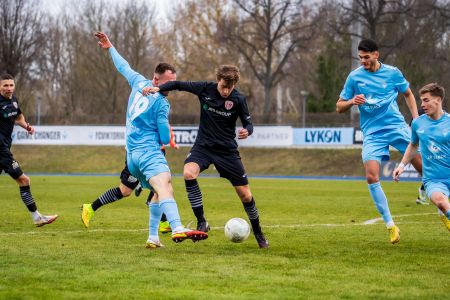 Nach Wiederanpfiff war es erneut Enes Küc, der mustergültig für Shalva Ogbaidze vorlegte. Der Rechtsfuß erzielte das 2:0 für „Viki“. Unsere Kicker gaben jedoch nicht auf und kamen in der 55. Minute zum Anschlusstreffer. Richardson spielte den Ball hoch auf Benyamina, der das Leder in den Lauf von Tom Weilandt köpfte. Der 30-Jährige lupfte dann über den herausstürmenden Maximilian Kinzig ins Tor. Danach waren wir vollkommen am Drücker. Der Ausgleich lag in der Luft, doch irgendwie sollte es nicht sein. Immer wieder war Viktoria Berlin zur Stelle und konnte das Tor noch im letzten Moment verteidigen. Und wenn es nicht ein Verteidiger war, dann war es der Pfosten, wie beim Alutreffer von Anthony Syhre nach einer Ecke. „Ich denke, dass wir aus unserer Sicht die zwei Situationen vor den Gegentoren verschlafen haben. Danach mussten wir hinterherlaufen, haben aber eine gute Reaktion gezeigt und den Anschlusstreffer erzielt. In der Folge haben wir dann noch ein paar gute Möglichkeiten. Ich denk auch, dass es aufgrund dieser Chancen dann verdient gewesen wäre, wenn wir den Ausgleich erzielt hätten. Wir müssen daraus lernen, weitermachen, uns weiterentwickeln und an uns arbeiten, damit wir die Spiele, dann nicht mehr so einfach verlieren“, sagte unser Trainer Roland Vrabec auf der Pressekonferenz nach dem Spiel.