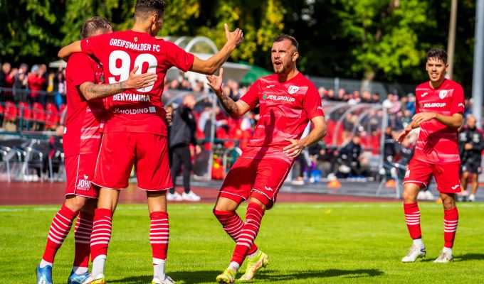 Greifswalder FC: Brendieck - Farr, Sanin (44. Lazdins), Rüh, Bilbija (75. Krolikowski) - Weilandt, Syhre, Schneider (75. Kowal), Richardson - Benyamina, Martens (62. Granatowski)