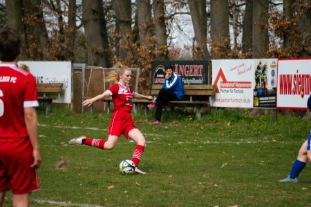 Defensiv mussten unsere Mädels zwar einige Gegentore wegstecken, jedoch warfen sie sich mit allem rein, was sie hatten. Ob nun Aushilfstorhüterin Miriam Schneider oder auch Dunya Hashemi in der für sie ungeliebten Mitte. In Hälfte zwei stellten sie dann zunächst auf Dreierkette um, sodass wie in der Woche zuvor die Mitte kompakter stünde. Dies funktionierte jedoch nicht sonderlich, sodass dies schnell wieder korrigiert wurde. Auch in Hälfte zwei kamen Anika Hanke und Anna-Lena Schumann nochmal in aussichtsreiche Positionen für einen eigenen Treffer, dies sollte dieses Mal jedoch nicht gelingen. Am Ende stand ein 0:16 auf dem Tableau, damit zehn Gegentreffer weniger als noch im Hinspiel. Zudem ließen die Mädels die Köpfe nicht hängen und schauen weiter nach vorne. Nach Ostern kommt am Mittwochnachmittag dann Blau-Weiß Greifswald III ins Volksstadion. Seid ab 16 Uhr gerne dabei und unterstützt auch unsere Kleinsten!