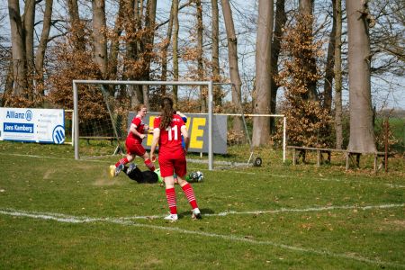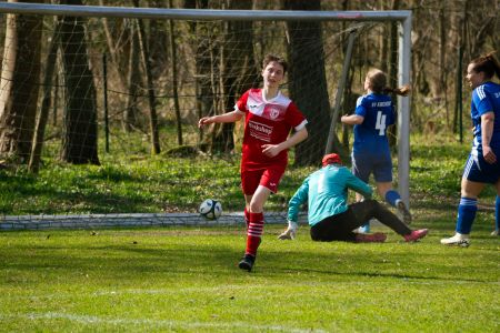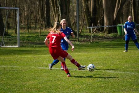 Die Anfangsphase legte hierfür dann auch ganz gut den Grundstein. Der SV Traktor war noch nicht so recht auf Betriebstemperatur und brauchte ein wenig, um ins Spiel zu finden. Dies wussten unsere Frauen auszunutzen und legten ein hohes Tempo an den Tag. Bereits nach neun Minuten gelang Janka Holtz auch schon der Führungstreffer, gut zehn Minuten später erhöhte sie auf 2:0. Es war in Hälfte eins ein Spiel auf ein Tor. Immer wieder gab es große Gelegenheiten, die aber leider nicht immer sauber ausgespielt oder abgeschlossen wurden. Selbst bei leerem Tor und der gegnerischen Keeperin am Boden, wollte der Ball einfach nicht erneut im Netz zappeln. „Ich bin auf den Platz gekommen und hatte innerhalb von einer Minute mehr Torschüsse als gefühlt die ganze letzte Saison“, so Kapitänin und Verteidigerin Wiebke Timm zur Überlegenheit. Allein auf der Anzeigetafel machte es sich nicht bemerkbar und so blieb das Spiel zur Pause mit dem 2:0-Zwischenstand offen.