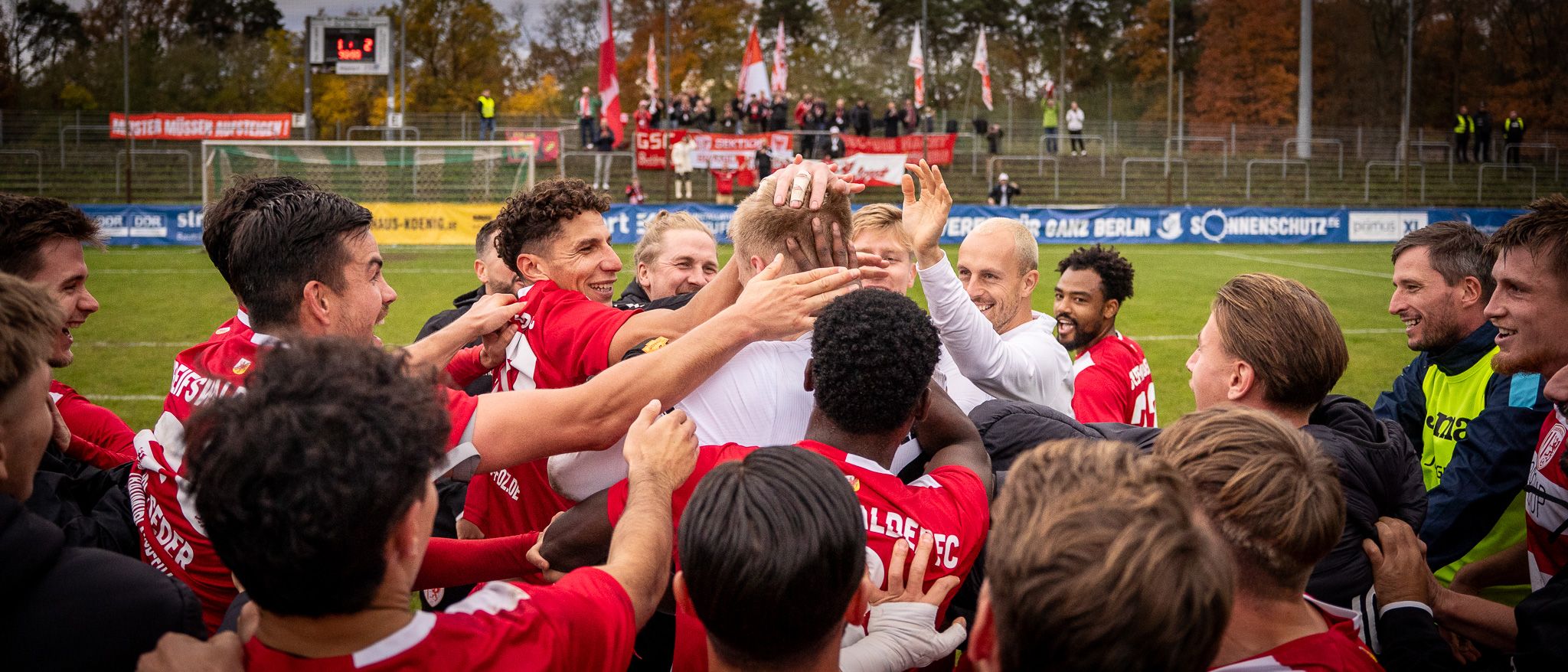 In der zweiten Halbzeit merkte man unseren Jungs den Gegentreffer zunächst noch an. Die VSG kam immer mehr vor unser Tor und erspielte sich über Nietfeld und Türpitz immer wieder gute Gelegenheiten aus der zweiten Reihe. So richtig gefährlich wurde aber unser GFC in der 55. Minute, als Benyamina im Strafraum frei zum Schuss kam, Klatte im VSG-Tor aber einen überragenden Reflex zeigte. In der 78. Minute verschätzte sich Flemming dann leicht und kam aus dem Tor, Paul Manske aber verfehlte das leere Tor. In den Schlussminuten überschlugen sich dann die Ereignisse. In der 90. Minute kam zunächst Benyamina zu einem Kopfball, der aber nicht genug Druck in Richtung Tor hatte. Im Gegenzug kam Türpitz zu einem Schuss, den Flemming nach oben klärte, ehe er rechtzeitig hochschnellte und auch den runterfallenden Ball fing. In der ersten Minute der Nachspielzeit dann wieder unser GFC. Vogt bekam nach einem Einwurf den zweiten Ball, zog in die Mitte, schoss auf das Tor und der Ball überquerte die Linie! Nach großem Jubel kam dann aber nochmal die VSG Altglienicke und hatte tatsächlich nochmal eine Doppelchance. Wieder war Flemming aber auf dem Posten, parierte Weltklasse und sicherte unter großem Jubel den 2:1-Auswärtssieg!