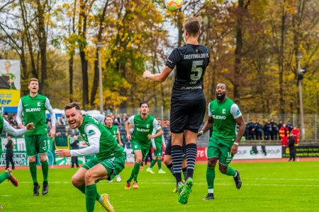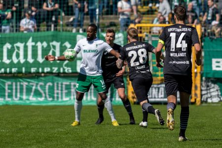 Und da ist er, der nächste Neuzugang für unseren Greifswalder FC. Stürmer Manassé Eshele kommt von Chemie Leipzig an den Ryck und soll unsere Offensive verstärken. Der 24-Jährige kam in der vergangenen Saison in 31 Spielen auf acht Treffer, drei weitere bereitete er vor. Eins dieser Tore erzielte er auch schon im Volksstadion. Es war der Führungstreffer für die Leipziger in unserem Heimspiel. „Ich meine, es ist natürlich immer als Spieler schön, wenn man trifft. Im Volksstadion war es aber ein richtig cooles Gefühl, das Stadion ist schön, es hat mich ein bisschen an alte Zeiten erinnert“, so Manassé. In der kommenden Saison wird er nun also noch viele weitere Gelegenheiten bekommen dieses coole Gefühl zu wiederholen, dieses Mal aber für die richtige Seite. In Greifswald wird er sich auf jeden Fall sehr wohlfühlen. „In der Stadt sah auf den ersten Blick alles relativ schön aus, relativ ruhig, da kann man ganz entspannt und ruhig leben, denke ich“, freut sich Eshele.