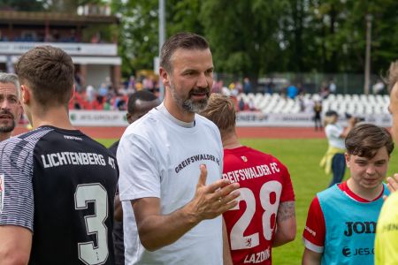 Schon zu Zeiten des Greifswalder SV 04 wechselte Marcel nach seiner Karriere quasi in einem fließenden Übergang vom Strafraum an die Seitenlinie. Seit dem Zusammenschluss zwischen dem GSV und Pommern Greifswald im Jahr 2015 war er dann festes Mitglied des Trainerteams. Er ging also all die Schritte von der Verbandsliga bis hoch in die Regionalliga mit. Marcel betreute dabei Torhüter wie Martin Leu, Nico Barz, Christian Person, Mika Schneider, Matti Kamenz oder eben auch seinen neuen Kollegen Adam Marczuk. Er sah dabei seinen eigenen Sohn Julian den Sprung zum Stammspieler und sogar Kapitän der Truppe schaffen. Familie ist Marcel sehr wichtig und die nimmt jetzt auch nochmal einen größeren Part in seinem Alltag ein. „Durch diese neue Konstellation kann man der Familie jetzt auch nochmal gerechter werden als zuvor. Die hat all die Jahre zurückgesteckt, somit ist es auch sehr gut, wie es jetzt ist. Unter der Woche gibt es dann noch Fußball, das Wochenende ist von nun an für die Familie reserviert“, verspricht Rüh. Obwohl er hierbei einschränkt, dass er wohl trotzdem auch an den Wochenenden noch häufiger im Stadion zu sehen sein wird, denn unser GFC ist einfach ein Teil von ihm. Genauso ist aber auch Marcel eben ein großer Teil unserer Geschichte, die an dieser Stelle somit nicht zu Ende ist. Sicherlich werden ihm die gewohnten Abläufe auch mal fehlen, insgesamt ist Marcel aber mit sich und der Sache im Reinen. „Ich fühle mich nach dem Gespräch mit Stefan Kroos dazu sehr wohl“, bestätigt Marcel. Und wir freuen uns, dass Adam und er uns erhalten bleiben!