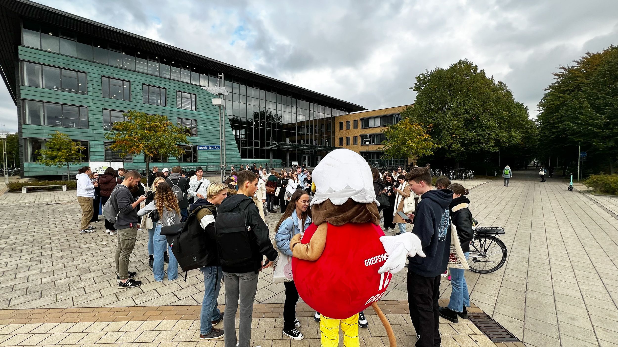 Es ist wieder so weit, das Semester startet und massenhaft Student*innen zieht es nach Greifswald. Die perfekte Möglichkeit, um auch für unseren Verein Werbung zu machen. Genau für solche Zwecke fand am Dienstag der Markt der Möglichkeiten statt. Vereine und Initiativen hatten dort die Möglichkeit, sich zu präsentieren und Interessenten anzulocken. Auch der GFC war vor Ort. Mit Spielern und Spielerinnen der Männer- und Frauenmannschaften präsentierten sich unsere Herren und Frauen gemeinsam an der Uni-Mensa. Denn besonders die Frauenteams leben von den Studentinnen und nutzen den Semesterstart daher gerne zur Suche nach Unterstützung. Ähnlich ist es bei der zweiten Herrenmannschaft vom Greifswalder FC. Zusätzlich dazu wurde auch der Verein an sich, unterstützt durch Greifi, präsentiert, um die neuen Student*innen direkt ins Stadion zu locken.