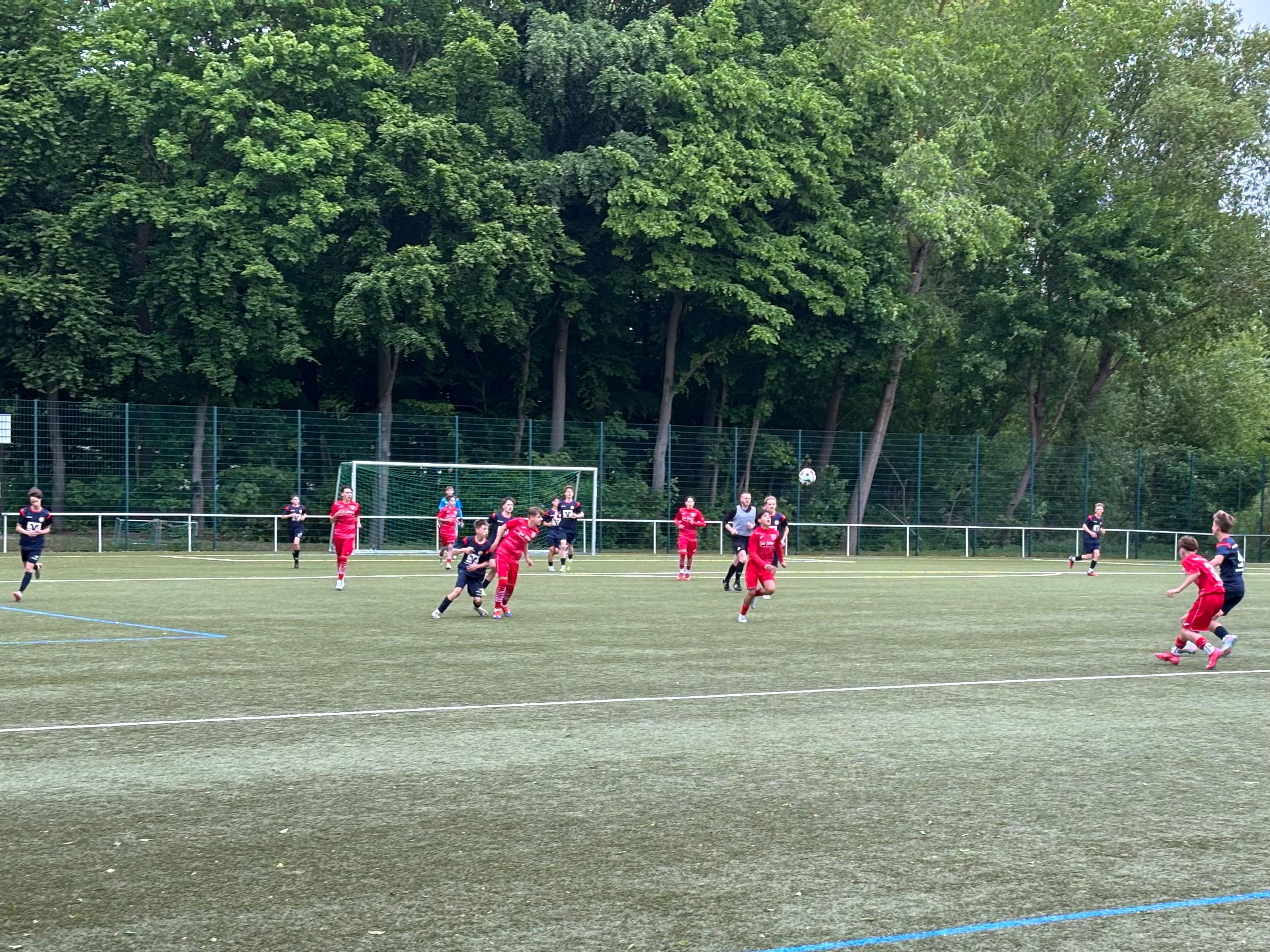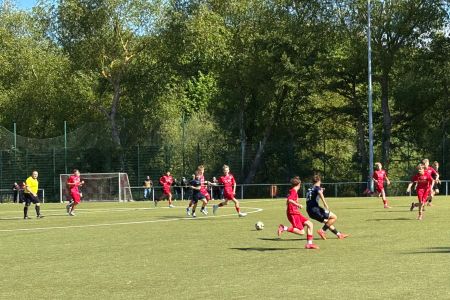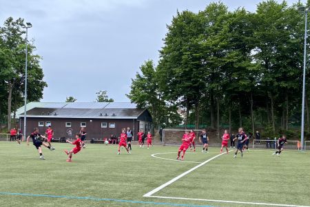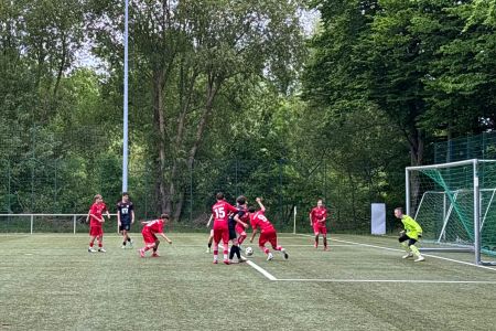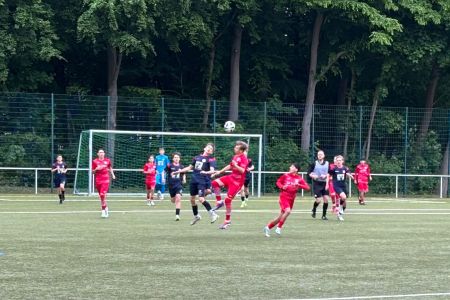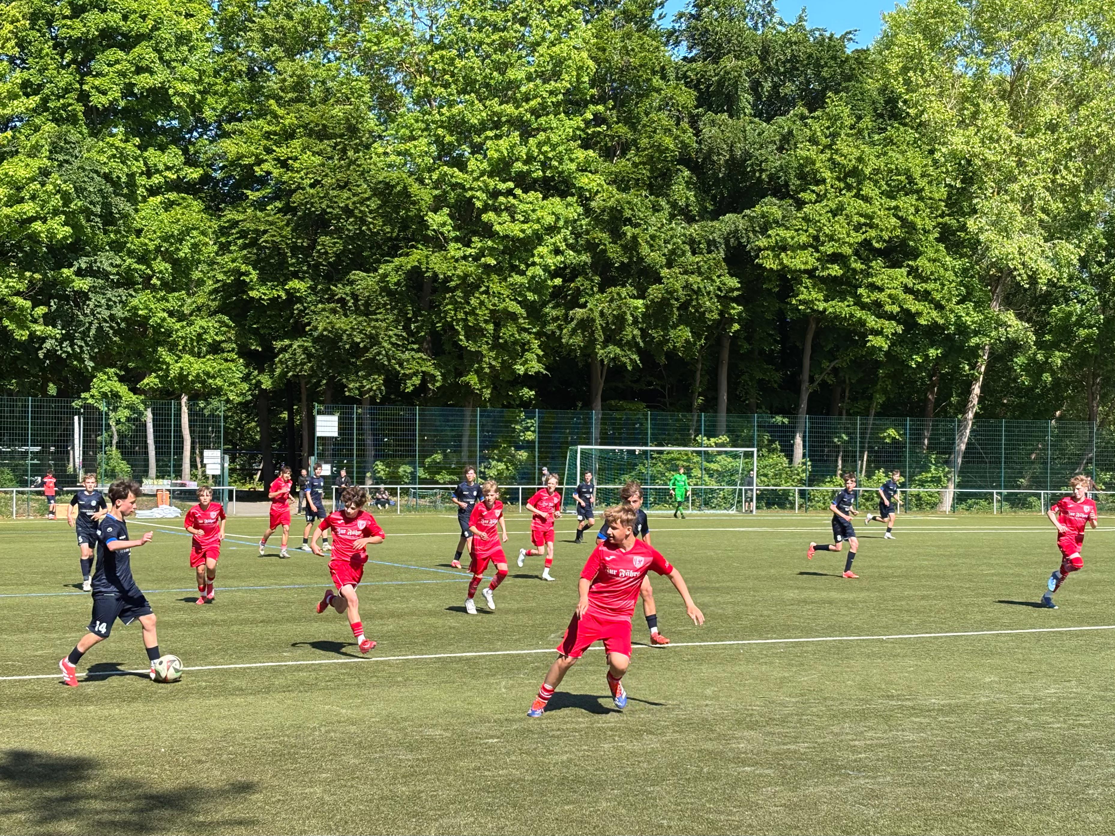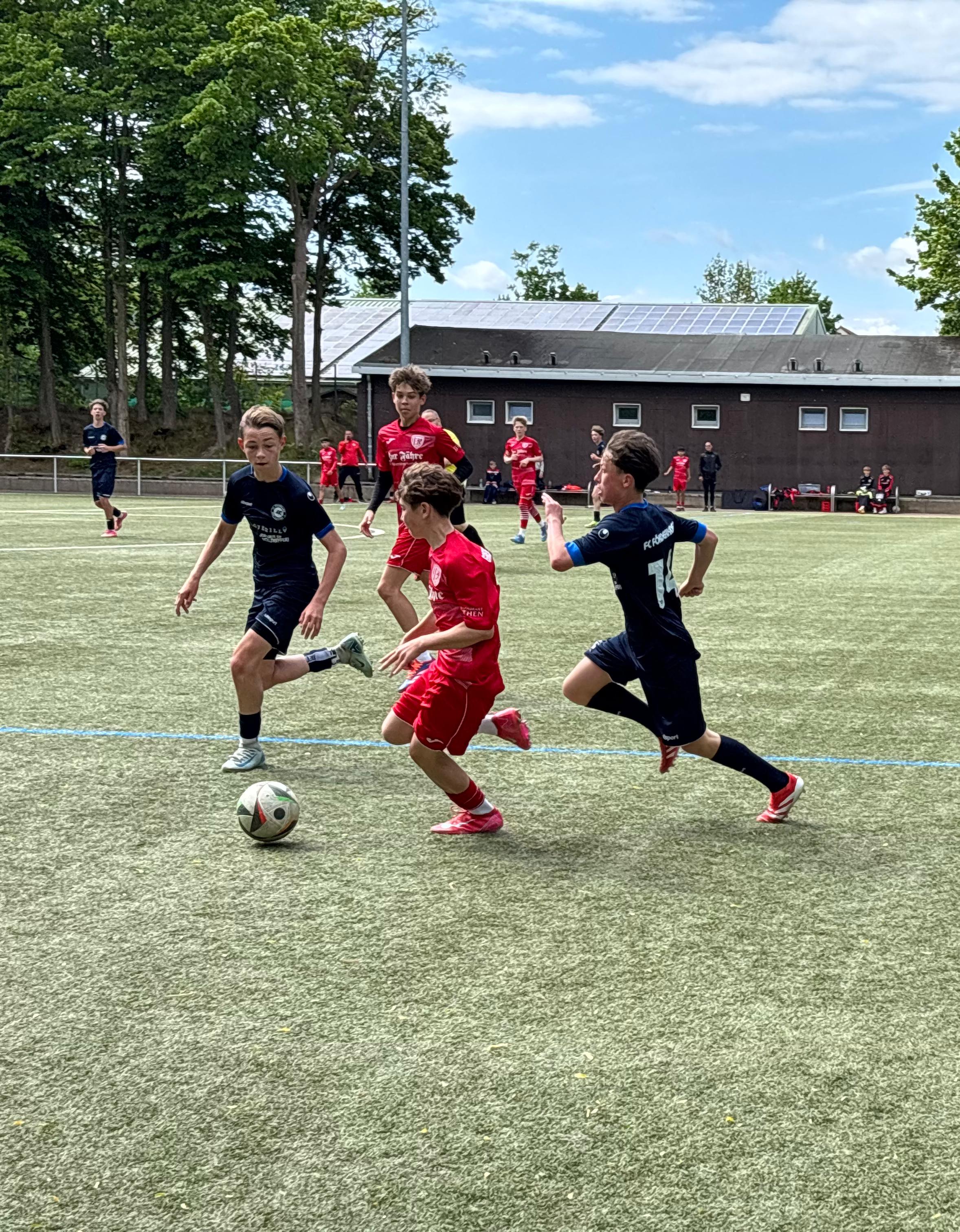 Eine bittere Niederlage musste hingegen unsere U14 einstecken. Im Duell mit den gleichaltrigen Jungs des FC Förderkader René Schneider entwickelte sich zunächst eine Partie auf Augenhöhe. Beide Seiten hatten einige gute Ansätze, unsere Jungs spielten die durchaus guten Gelegenheiten allerdings nicht immer sauber genug aus und verpassten somit den Führungstreffer. Nach etwas mehr als 25 Minuten trafen dann leider die Gäste durch eine Bogenlampe ins lange Eck. Danach war das Team von John-Philipp Bruhns leicht geschockt, kassierte nur eine Minute später fast noch das zweite Gegentor. Dies geschah dann leider in der 32. Minute dann wirklich. In Halbzeit zwei lief das Team zwar weiter an, es ergaben sich aber nur wenige klare Möglichkeiten. Auf der anderen Seite hatte die U14 bei einem Lattentreffer des Förderkaders noch etwas Glück. So blieb es beim bitteren 0:2.