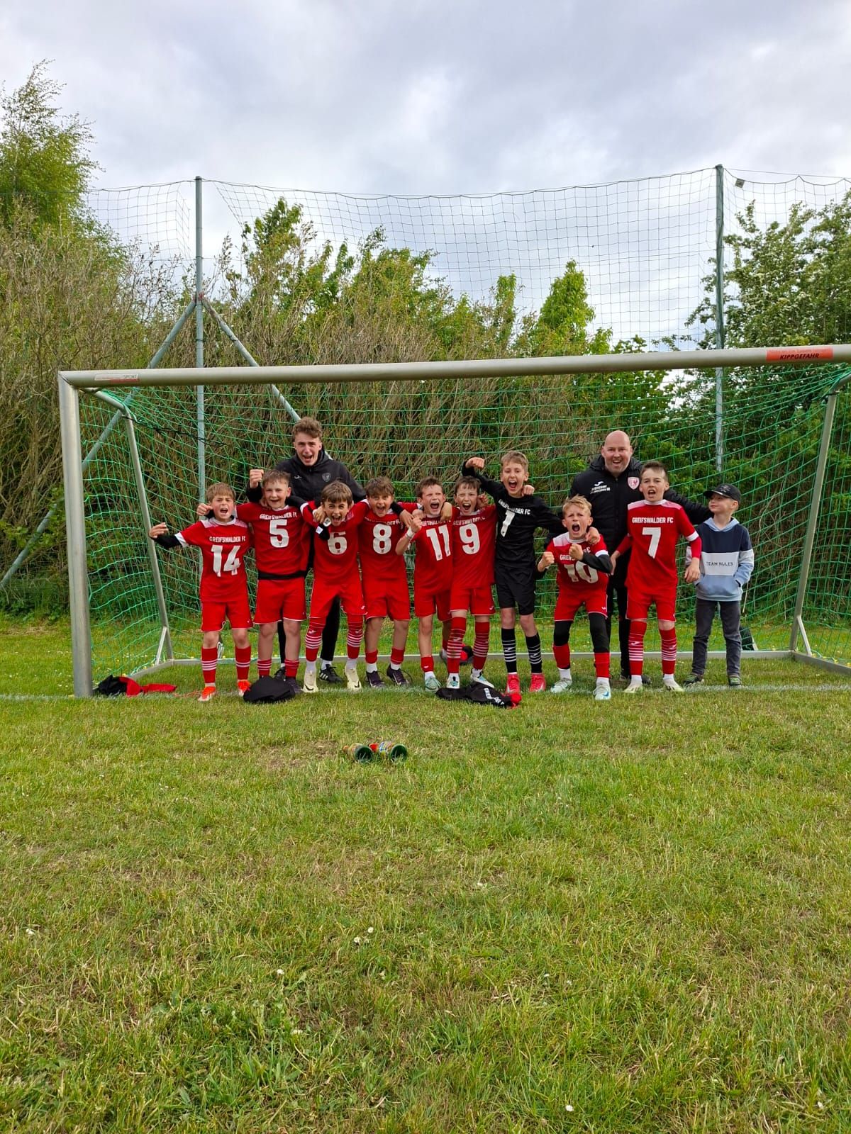 Unsere U11 brauchte in der vorletzten Woche noch zwei Siege und mindestens sieben Treffer, um sich den Staffelsieg in der Kreisliga zu sichern. Nachdem das Team von Jonas Huschka-Kössler bereits am vorletzten Mittwoch mit einem 15:0 gegen unsere D-Juniorinnen den Part mit den Toren erledigt hatte, fehlte somit nur noch ein weiterer Sieg am letzten Freitag gegen Fortuna Neuenkirchen. Hier ging die Mannschaft auch recht schnell in Führung, kassierte aber nur wenig später den Ausgleich. Schockstarre und wackelige Beine? Fehlanzeige. Die Jungs spielten ihren Stiefel runter, blieben ruhig und souverän und konnten durch eine starke Leistung insbesondere von Lennard Zeisset und Jaron Kampf die Partie souverän ins Ziel bringen. Am Ende sollte hier ein 15:1 auf dem Papier stehen, das den Staffelsieg endgültig klar machte. Außerdem stellte das Team mit 161 Treffern auch noch den besten Angriff und mit 15 Gegentoren die beste Defensive der Liga. Stark!