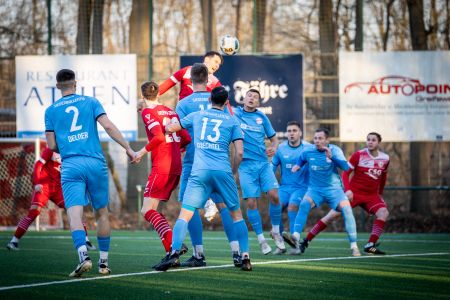 Das Wetter hätte nicht besser sein können! Sonne pur, angenehme Temperaturen und die ersten Frühlingsgefühle waren am Weltfrauentag da. Für unsere U23 stand an diesem Tag aber ein harter Brocken auf dem Plan. Nach dem guten Start ins neue Jahr mit vier Punkten aus zwei Spielen ging man aber auch trotz der klaren 0:6-Niederlage im Hinspiel optimistisch ins Spiel. Und das zeigte sich dann auch auf dem Feld. Die Siedenbollentiner taten sich in der Anfangsphase schwer und unser GFC hatte in der 24. Minute die große Chance auf die Führung. Niklas Mieß wurde am zweiten Pfosten ganz frei gelassen, legte sich den Ball auf den starken rechten Fuß und setzte den Flachschuss an den Pfosten. Dieser Knall weckte die Gäste wohl auf, denn wenig später köpfte Jakub Klimko zur Führung ein. Wenig später klingelte es erneut im Kasten unseres GFC. Dieses Mal traf Lukas Möller per Kopf.