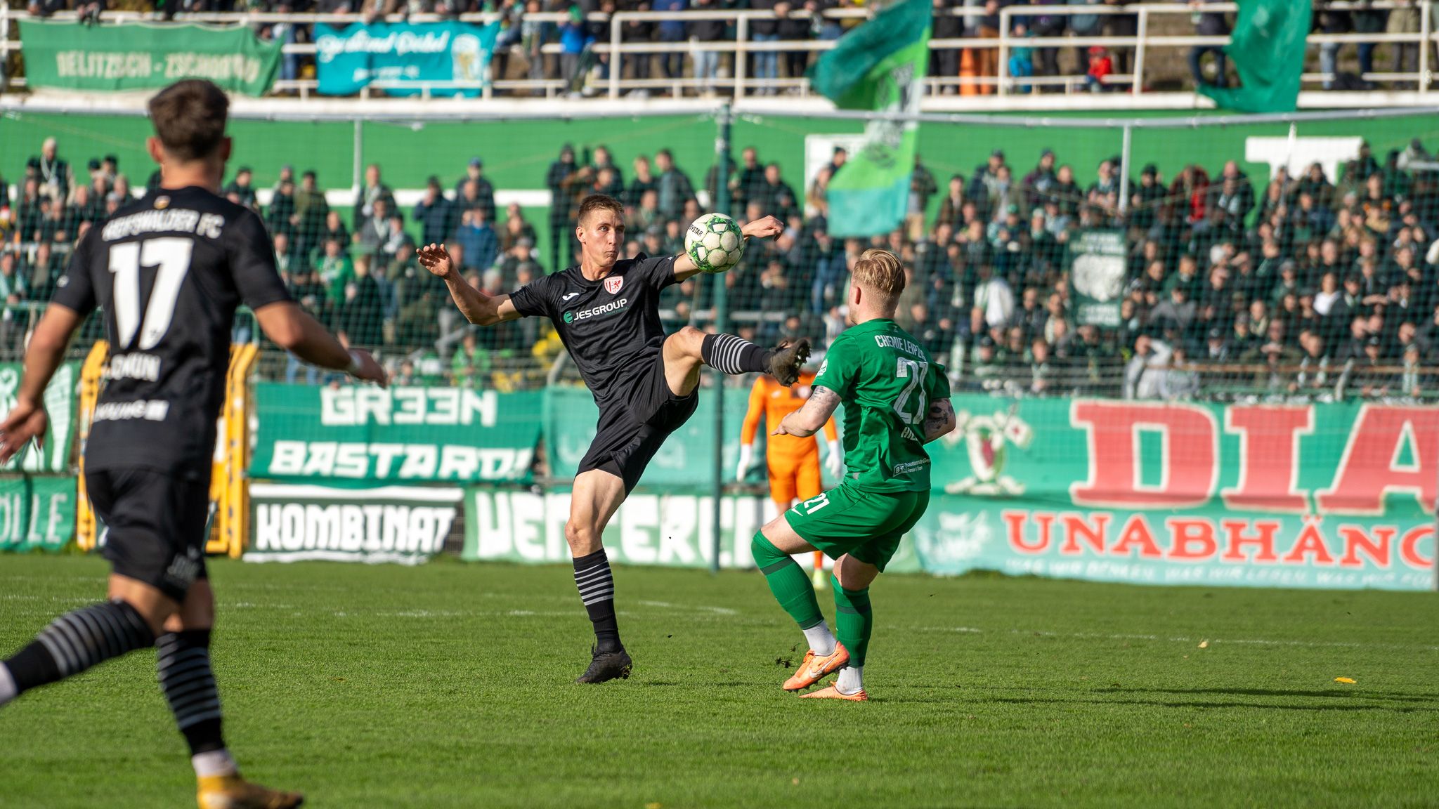 Unser Team musste im Gegensatz zum Heimspiel gegen den FC Energie Cottbus auf zwei Positionen umbauen. Cabrera und Adewole starteten in Leipzig. Die Ausfälle von Mike Eglseder und Tom Weilandt waren bereits vor dem Spiel klar. Oliver Daedlow war etwas angeschlagen und kam später nur von der Bank. Für unseren GFC ging das Spiel sehr gut los, denn David Vogt hatte in der ersten Spielminute die Chance auf die Führung. Sein Schuss aus zehn Metern konnte Chemie-Torhüter Bellot allerdings parieren. Mit mehr Spielanteilen und mehr Zug nach vorn, gab es in der 27. Minute das erste Raunen unter den Zuschauern. Can Coskun flankte von der linken Seite und die hatte es in sich. Zwar nicht gewollt, aber gekonnt knallte der Ball dann nach langer Flugbahn an die Latte. Nur drei Minuten später war es erneut Coskun, der dieses Mal allerdings eine Ecke in den Strafraum brachte. Tobi Adewole stieg am höchsten und köpfte den Ball zum zweiten Mal für den GFC an die Latte. Noch vor der Pause wurden aber auch noch die Hausherren gefährlich. Lucas Surek versuchte es über die linke Seite mit einem Fernschuss, fand in Jakubov aber seinen Meister, der den Ball über die Latte zur Ecke lenkte.