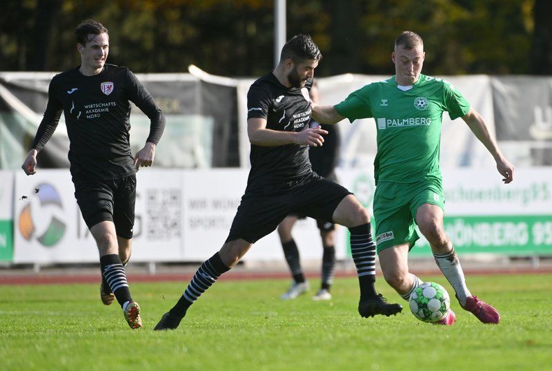 Der Schönberger Platz hielt indes einige Tücken bereit: Tiefer, zerfurchter Rasen und einsetzender Starkregen verwandelten das Geläuf in einen puren Kraftakt ab der ersten Minute.