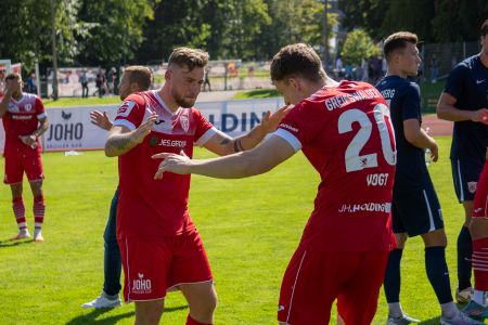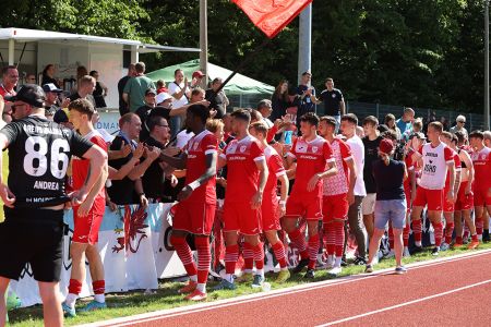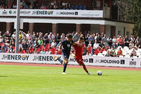 In der zweiten Hälfte versuchten unsere Jungs dann die Führung zu verteidigen und durch gezielte Umschaltmomente und Konter die Entscheidung herbeizuführen. Das schien zunächst auch aufzugehen, denn natürlich entwickelten sich Räume für uns, in die wir hineinstachen. Soufian Benyamina zum Beispiel hatte eine gute Chance, indem er mit seinem starken Antritt an einem Gegenspieler vorbeizog. Der Schuss aber wurde noch ans Außennetz abgefälscht. Mit zunehmender Dauer wurde Babelsberg allerdings immer stärker und erarbeitete sich Gelegenheiten. Unsere Abwehr hielt stand und klärte ein ums andere Mal zur Ecke. Die Kontergelegenheiten wurden allerdings zu oft nicht gut genug ausgespielt. Entweder liefen unsere Jungs ins Abseits oder verpassten das Abspiel. Besonders bitter wurde es dann in der fünfminütigen Nachspielzeit. Eshele war durch, kreuzte den Laufweg mit dem Verteidiger hinter ihm und fiel nach einem Kontakt zu Boden. Schiedsrichter Kai Kaltwaßer aber entschied auf Schwalbe. Dies hatte eine gelbe Karte zur Folge, da Eshele aber schon verwarnt war hieß das: Gelb-Rot. Danach drückte Babelsberg nochmal. Eine Flanke wurde in die Mitte geklärt, Steinborn stand goldrichtig, wemmste das Leder aber an die Latte. Glück für unseren GFC! Wenig später war dann endlich Schluss und der 1:0-Erfolg eingetütet. Wir bleiben damit weiter ungeschlagen und klettern dank unseres ersten Sieges zu Null vorerst auf Platz zwei, während Babelsberg erstmals in dieser Saison Punkte liegen ließ.