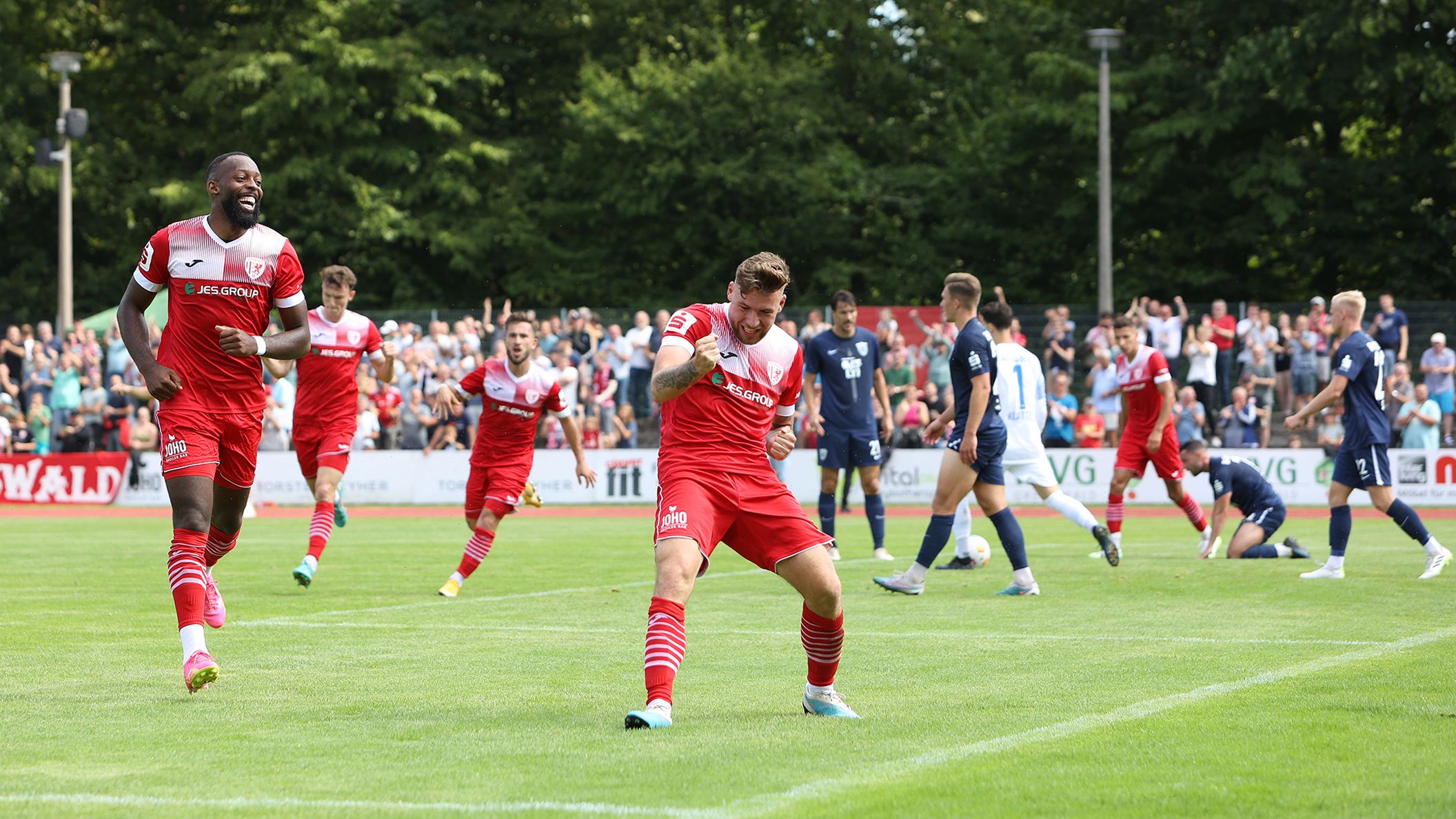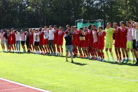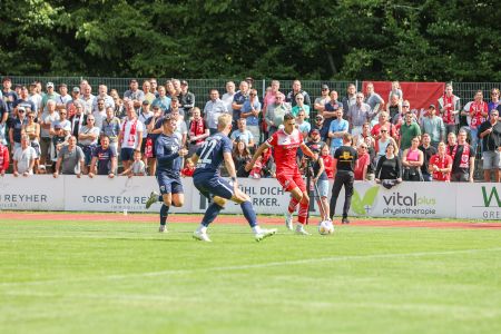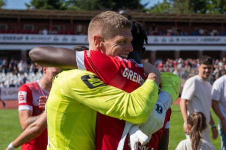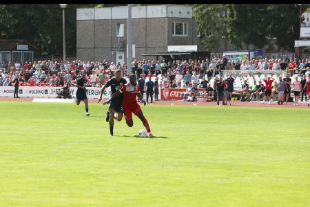 Unsere Jungs hatten am 4. Spieltag der Regionalliga Nordost eine schwierige Aufgabe vor der Brust. Der knappe 2:1-Sieg unter der Woche aus Chemnitz noch in den Beinen, ging es bei brütender Hitze auf den Platz ins Volksstadion. Gegner war Babelsberg, das aus drei Spielen bislang drei Siege geholt hatte. Entsprechend viel Respekt hatten unsere Jungs auch in den ersten Minuten. Doch der Respekt war auch beim Gegner da, denn unser Saisonstart war ebenfalls bekanntermaßen sehr gut. In den ersten Minuten bis zur Trinkpause sollte es kaum Chancen geben, beide Teams wollten keine Fehler machen. Danach dann der erste Versuch von Manassé Eshele, der den Ball allerdings drüber setzte. In der 32. Minute wurde es dann erstmals laut. Nach einem Ball von Coskun von Links bekam Benyamina in der Mitte den Ball nicht auf das Tor, beim Abpraller stand aber Oliver Daedlow bereit, der das Leder an die Unterkante der Latte und hinein beförderte. 1:0, erstes Saisontor für unseren Neuzugang. Danach übernahmen wir die Spielkontrolle und kamen noch einige Male gefährlich vor das gegnerische Tor. Die beste Chance hatte dabei erneut Eshele, der auf das Tor zulief, aber am herausstürmenden Torwart scheiterte. Somit blieb es beim 1:0.