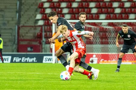 Rot-Weiß Erfurt: Manitz – Lehmann, Zeller, Schwarz (40. Adesida), Schulz – Muteba (85. Gall), Startsev – Mergel (67. Santana Soares), Weinhauer, Hajrulla – Seaton (85. Langner)