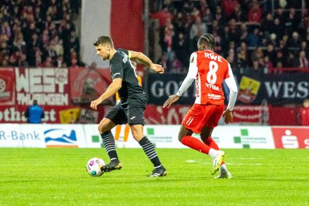 Nachdem Eglseder nur drei Minuten nach dem Ausgleich einen Kopfball über das Tor köpfte, hatte Cabrera im Anschluss die riesige Chance zur Führung für unsere Jungs. Brandt bediente den Kolumbianer mit einem Chip-Ball, den unser Angreifer auf das Tor von RWE-Torwart Manitz lupfte (65.). Insgesamt war es eine sehr rassige Partie, ohne dass sie unfair war. Schiedsrichter Hagemann verteilte trotzdem beachtliche elf gelbe Karten. In der Schlussphase waren ein Seaton-Kopfball, der links am Tor vorbeiging (71.), sowie ein Daedlow Abschluss, der allerdings ebenfalls ungefährlich blieb (84.), die einzig halbwegs nennenswerten Torraumszenen. Am Ende war es ein Unentschieden, mit dem beide Teams gut leben konnten.
