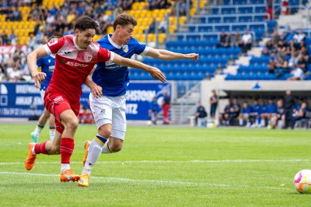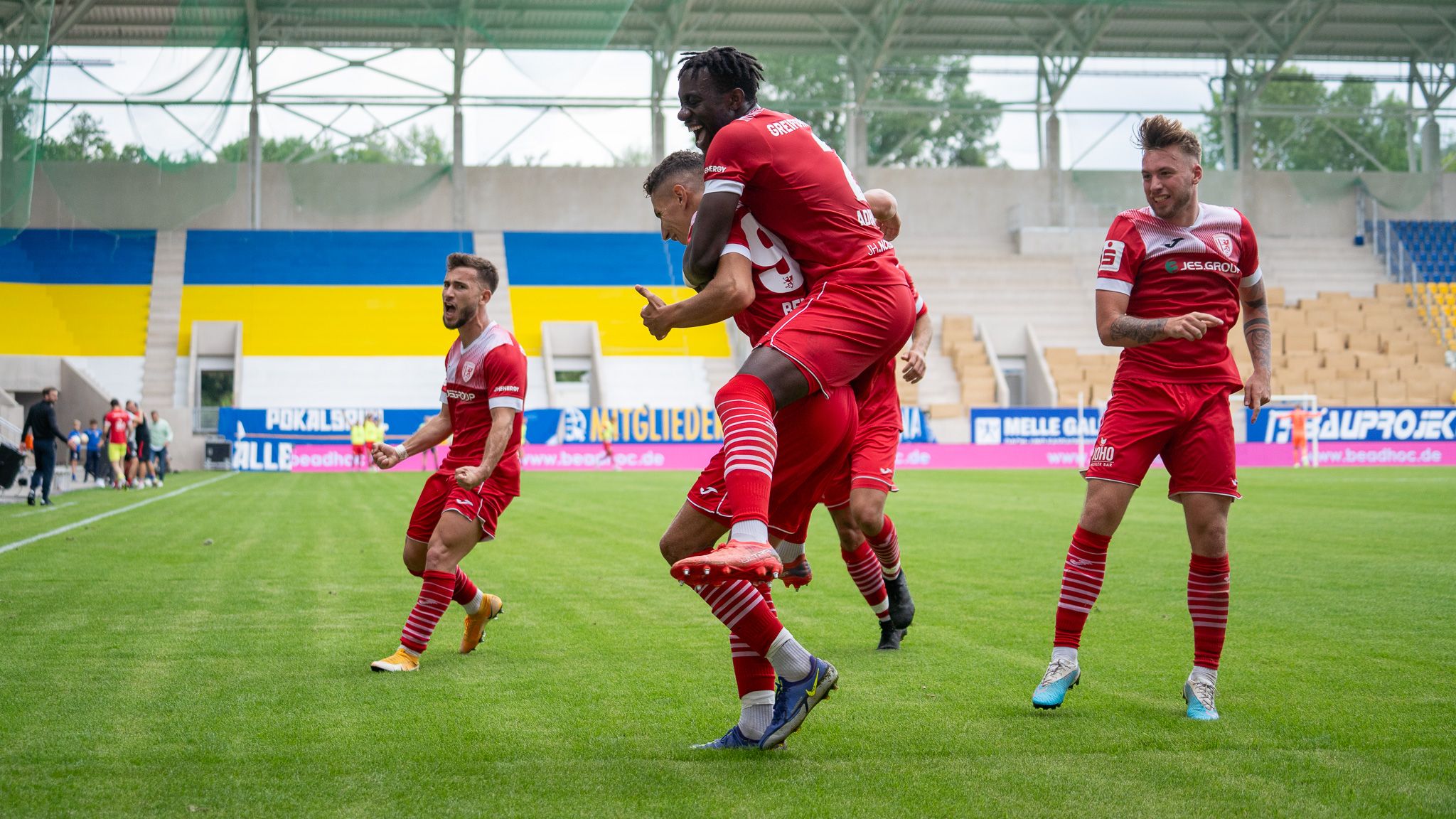 Die Hausherren versuchten dann immer wieder zu Chancen zu kommen, aber die Idee fehlte. Wir konnten uns immer wieder befreien und für die nötige Entlastung sorgen. Einzig der Fernschuss vom eingewechselten Muiomo war gefährlich. Der Linksaußen zog in die Mitte und schloss ab, jedoch streifte der Schuss nur die Oberkante der Latte. In der Nachspielzeit kam der FCC dann aber doch noch zum Ausgleichstreffer. Nach einem vermeintlichen Foulspiel an Gipson entschied Schiedsrichter Klemm auf Freistoß, den Hoppe in den Sechszehner bringen sollte. Hehne stieg am höchsten und köpfte in der zweiten Minute der Nachspielzeit zum 1:1 ein. Am Ende wohl ein gerechtes Ergebnis, wenn man die ganzen 90 Minuten sieht. Unsere Jungs sind natürlich trotzdem enttäuscht, aber dieser Auftritt beim Meisterschaftsfavoriten macht richtig Lust auf mehr.