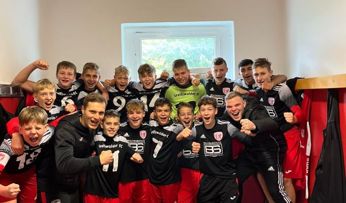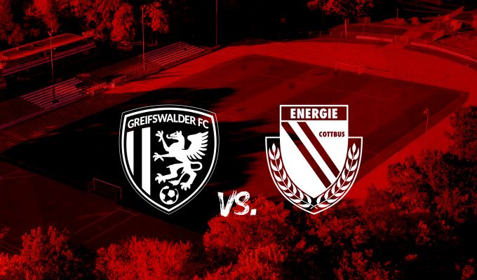 Die Kulisse war bereit für einen denkwürdigen Regionalligaspieltag im Nordosten der Republik. Etwa eine Stunde vor Anpfiff hörte es auf zu regnen und die Sonne wollte sich den Kracher im Volksstadion nicht entgehen lassen. Spitzenreiter Greifswalder FC traf auf den Vorjahresmeister und Verfolger Energie Cottbus. Es ging um nichts weniger als die Tabellenführung. Klar, dass auch viele Zuschauer ins Stadion wollten und so brachen wir erneut unseren Regionalliga-Rekord. 3.907 war die endgültige Zahl an Fans, die einen bärenstarken GFC sehen sollten, der von Beginn an früh drauf ging und beinahe nach nur zwei Minuten in Führung lag. Ein Weitschuss von David Vogt flog an die Unterkante der Latte, an den Rücken von Cottbus-Torwart Sebald und ins Aus. Das erste Ausrufezeichen. Unsere Mannschaft hatte verstanden worum es ging und spielte munter weiter nach vorne. Ein Flachschuss von Soufian Benyamina nur eine Minute später war der nächste Beleg. Egal ob nun eine Schussmöglichkeit aus 16 Metern von Oliver Daedlow, der Freistoß von Jorik Wulff, der auf dem Tornetz landete oder der Schlenzer von Elias Kratzer, der nur knapp am Knick vorbei ging, unser Greifswalder FC hätte in der ersten Hälfte zwingend eine der vielen Gelegenheiten und Ansätze zur Führung nutzen müssen. Es blieb jedoch beim 0:0 zur Pause.