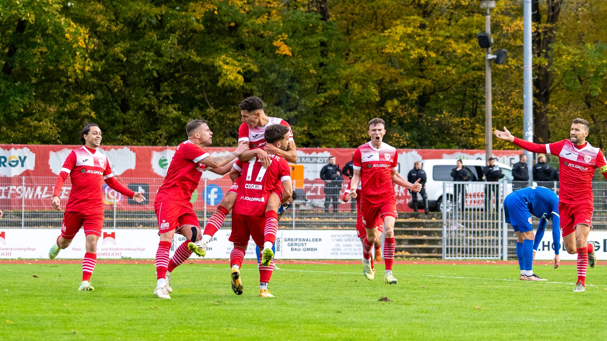 Zur zweiten Halbzeit ersetzte Tobi Adewole verletzungsbedingt Mike Eglseder in der Innenverteidigung. Dennoch war es sofort wieder unsere Mannschaft, die den Weg nach vorne suchte und mit einem Schuss von David Vogt auch fand, jedoch das Tor, das fand sie nicht. Anders Cottbus. In der 54. Minute kam Cottbus über die linke Seite, schlug eine starke Flanke und Tim Heike machte das, was er in dieser Saison am besten kann, er vollstreckte. Ein überraschender Rückstand, der unser Team aber nicht verunsicherte. Weilandt und Kocer kamen in die Partie und Kocer hatte gleich die erste Gelegenheit. Nach einem weiten Ball stand er frei vor dem Tor, traf den Ball aber nicht richtig. Seine nächste Chance nur zehn Minuten später. Ein Linksschuss traf den Pfosten, von dort den Rücken von Sebald, der stand auf und sah den Ball gar nicht, aber irgendwie wollte auch dieses Mal der Ball nicht über die Linie. Kopfbälle von Daedlow und erneut Kocer konnten pariert werden. Die Zeit, sie lief unseren Jungs immer mehr davon. In der 90. Minute dann nochmal ein Versuch. Brandt steckte durch in den Strafraum zum eingewechselten Cabrera, der zurück zu Benyamina, dessen Schuss noch leicht abgefälscht ließ Sebald dieses Mal keine Chance! Ausgleich in der letzten Minute für unseren GFC. Das Stadion explodierte, ein Tor, das sich mehr als angebahnt hatte. Direkt im Gegenzug dann aber fast doch noch die Niederlage. Cottbus konterte und ein letzter Schuss rollte nur minimal am Tor vorbei. So blieb es beim 1:1 und der Tabellenführung unseres Greifswalder FC, der außerdem auch weiterhin ungeschlagen in dieser Saison ist!