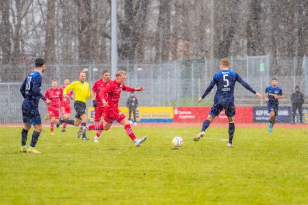 Bei norddeutschem „Schietwetter“ empfing der GFC das U23-Team der Hertha aus Berlin. Drei Tage nach dem Sieg gegen ZFC Meuselwitz wollte unsere Regionalligamannschaft erneut als Sieger vom Platz gehen. In der ersten Halbzeit war es größtenteils ein ausgeglichenes Spiel. Nach 20 Minuten testete Farr das erste Mal die Reaktionsfähigkeit des BSC-Keepers. Zehn Minuten vor dem Halbzeitpfiff ging Fabio Schneider, der für den verletzten Jannik Bandowski kam, mit einem Berliner Innenverteidiger im Sechzehner ins Tänzchen, zog vorbei und schloss leider zu zentral ab. Jonas „Brendi“ Brendieck durfte sich dann vor der Pause in Szene setzen und parierte per Fußabwehr klasse.