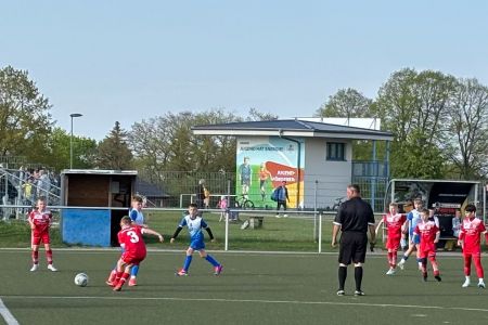 In der Liga gab es aber auch noch ein paar Spiele in unserem Nachwuchs. Unsere D2 zum Beispiel empfing den FSV Blau-Weiß Greifswald zum Stadtderby. Man traf hier auf die ehemalige Verbandsligamannschaft des Gegners und so nahm das Team von Christian Koch das Spiel sehr ernst. Man fand auch ganz gut ins Spiel und erarbeitete sich gute Chancen, allerdings fehlten die klaren Abschlüsse. So kam auch Blau-Weiß immer besser rein und fand Lücken, die Möglichkeiten wurden allerdings immer wieder stark von Lenny Kaliebe im Tor unseres GFC pariert. Es dauerte bis zur 54. Minute, bis der erste Treffer fallen sollte, allerdings für den Gegner. Nach einer Ecke waren die Gäste zur Stelle und erzielten das 0:1. Unser Team ließ aber die Köpfe nicht hängen. Ein Fernschuss nur zwei Minuten später brachte direkt wieder den Ausgleich. Beide Seiten wollten den Sieg und warfen nochmal alles rein, es blieb am Ende jedoch das 1:1-Unentschieden.
