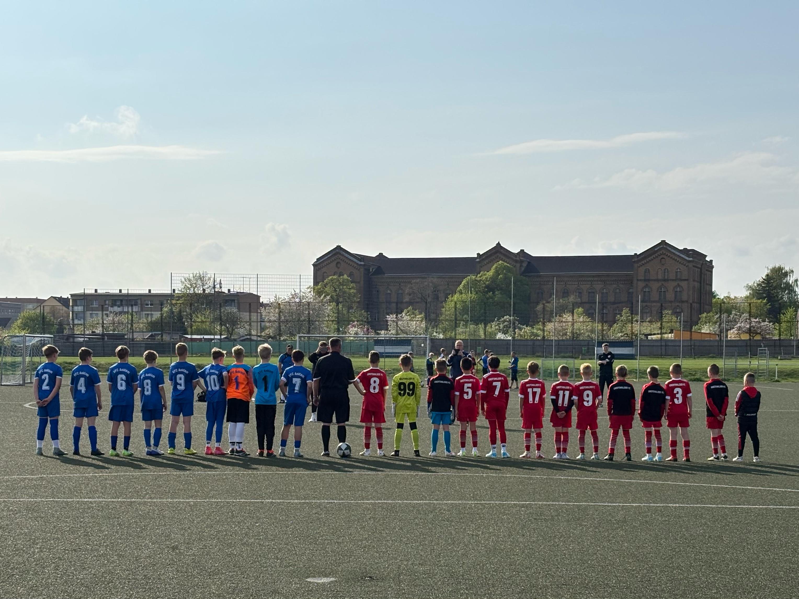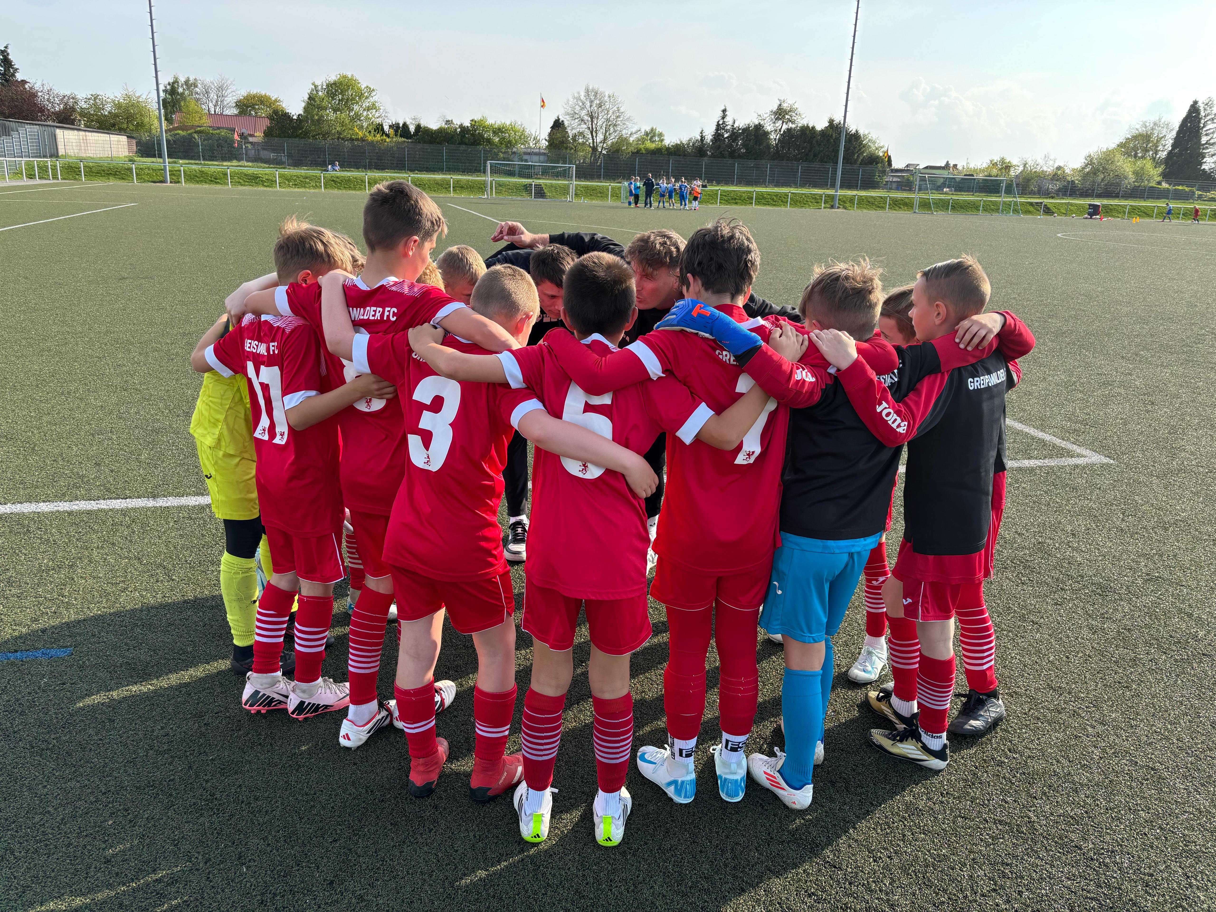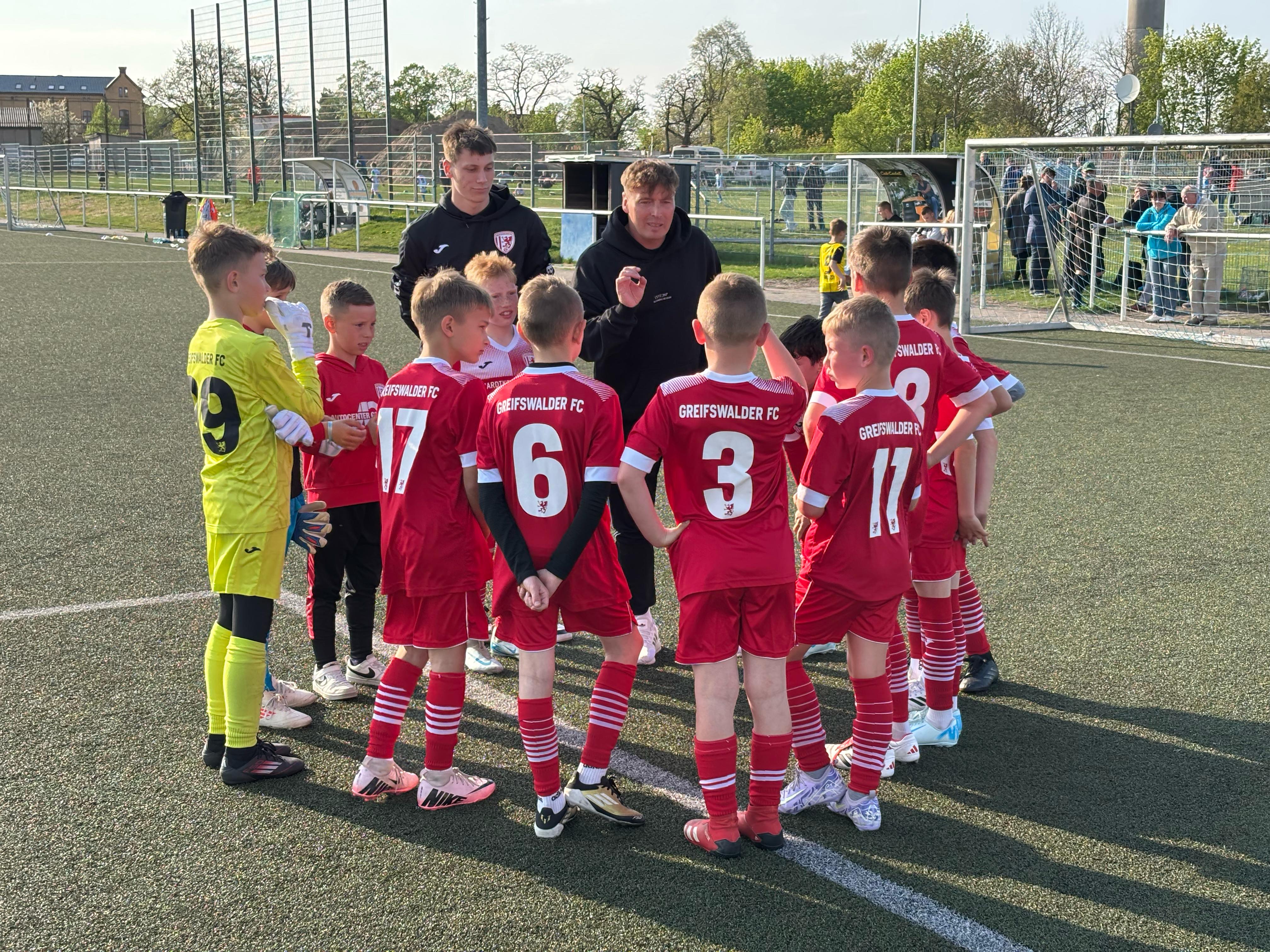 Für unsere U10 stand in dieser Woche mal wieder einiges auf dem Programm. Nach den guten Tests gegen die älteren Teams von Karlshagen und Malchin ging es am vergangenen Mittwoch nun gegen die D1 des VFC Anklam. Die teils vier Jahre älteren Gegner staunten dabei nicht schlecht, was unsere Greifenkids spielerisch draufhaben. Zwar ging Anklam nach nicht mal einer Minute in Führung, doch das verunsicherte unsere Mannschaft so gar nicht. Sie schüttelte sich kurz und setzte den Gegner dann in gewohnter Manier unter Druck. Sie erzwangen Fehler und ein Eigentor zum 1:1-Ausgleich. Im Anschluss war es dann ein Spiel auf ein Tor, sodass die U10 schon zur Pause mit 4:1 führte. Auch im zweiten Durchgang ging es so erfolgreich weiter. Ein Tor folgte dem anderen, eines schöner rausgespielt als das vorherige. Am Ende stand ein 9:2 auf dem Papier und viele stolze Gesichter waren in der Mannschaft, beim Trainerteam und den Eltern zu sehen.