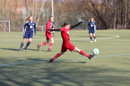 Nach einer guten Vorbereitung schwangen bei unseren Verbandsligistinnen dennoch einige Unsicherheiten mit, was den Ligaauftakt bringen sollte. Das Team aus Schwerin war schon immer ein harter Gegner, auch wenn unser GFC bereits im Hinspiel siegte. Die ersten 15 Minuten liefen noch etwas unrund. Unser erstes Frauenteam agierte teilweise etwas zu tief und zögerlich und hatte zu wenig Ballbesitz. Defensiv jedoch stand das Team stabil und konnte dadurch zunehmend immer mehr Spielkontrolle gewinnen. Noch mehr Sicherheit hatten unsere Frauen dann nach Mona Ebermanns Führungstreffer nach einem Freistoß. So konnten sie endlich besser miteinander spielen und kurz darauf auch das 2:0 durch Wiebke Gustmann erzielen.