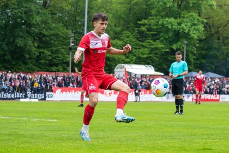 Fast wäre Kocer sogar der Doppelschlag geglückt, Schiedsrichter Rauschenberg entschied bei Kocers nächstem Treffer allerdings auf Abseits (62.). Tatsächlich bewies Zwickau aber Moral und kam noch einmal zurück. Schmedemann stellte Dobruna im eigenen Strafraum ein Bein – klarer Elfmeter. Beim fälligen Strafstoß war Jakubov zwar in der richtigen Ecke, Herrmann platzierte die Kugel aber zu gut, sodass die Gäste wieder auf zwei Tore dran waren. Ausschlaggebend war das am Ende allerdings nicht mehr, denn unser GFC brachte die Führung über die Zeit. Einziger Wehrmutstropfen: Farr sah nach einem taktischen Foul in der 83. Minute seine fünfte gelbe Karte der Saison und wird damit am kommenden Sonntag, den 12. Mai, um 13 Uhr bei der VSG Altglienicke fehlen.