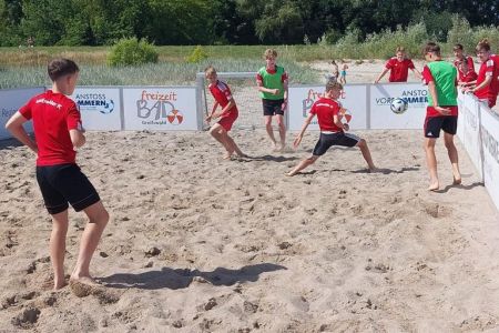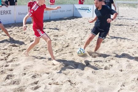 Am Samstag ging es im Strandbad Eldena richtig zur Sache. Im Rahmen des 1. Eldenaer Beachcups präsentierte sich auch unser Greifswalder FC als einer unserer städtischen Vereine und veranstaltete ein Beachsoccer-Turnier. Unsere FSJ’ler Ben und Eduardo kümmerten sich an dem Tag hauptsächlich um die Betreuung und Durchführung des Turnieres. Neun Teams hatten sich letztendlich angemeldet. Die jüngsten Kicker kamen aus unserer U14, die ältesten waren Mitte 20. Gespielt wurde mit drei Spielern pro Mannschaft über acht Minuten auf einem 12,50m x 7m großen Feld. Von den Organisatoren des Stadtsportbundes gab es durchweg positives Feedback und auch Hauptorganisator unseres Bereiches, Ben Tornow, war zufrieden. „Es war letztlich ein reibungsloser Ablauf, vor allem was die Spiele anging“, bilanzierte ‚Bennyboy‘. Der Sieg ging letztlich an eine Mannschaft, die durchaus einen gewissen Bezug zu uns hatte. „Gewonnen hat Fabio Friedrichs Truppe. Also, nicht Fabio direkt, aber seine Freunde aus der WG“, sagte Tornow. So bleibt Fabio nach seinem Abschied zu Union also auch diese Woche nochmal Thema in unserer Wochenschau.