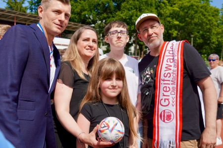 Toni Kroos nutzte den Tag nicht nur für offizielle Termine: Er nahm sich Zeit für Autogramme, Selfies und Gespräche mit den Kindern und Jugendlichen des Greifswalder FC – jenem Verein, bei dem einst seine beeindruckende Karriere begann. In seiner emotionalen Rede blickte Kroos auf seine Anfänge in Greifswald zurück und machte den jungen Sportlern Mut: „Wenn ihr etwas erreichen wollt, geht es nur über harte Arbeit.“