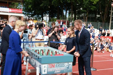 Ein Highlight jagte das nächste: Neben der Überreichung von einem GFC-Trikot an Toni von unserem Vorstandsvorsitzenden Heiko Jaap trug sich der ehemalige Mittelfeldspieler ins goldene Buch der Stadt ein und spielte noch eine Runde Tischkicker mit Oberbürgermeister Stefan Fassbinder und Ministerpräsidentin Manuela Schwesig.