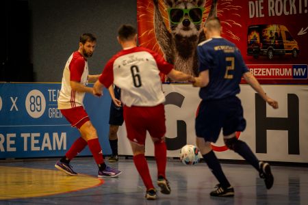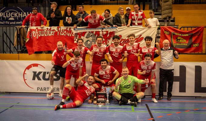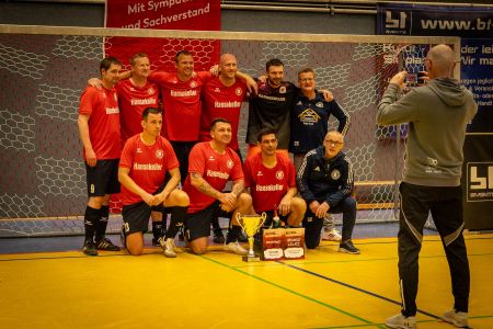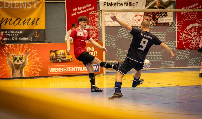Eine Kuschi-Show erlebten die Fans im Spiel um Platz 7, als Rico Kusch vom Sturmvogel Lubmin sechs Treffer in einem Spiel erzielte und sich damit die Torjägerkanone sicherte. Auch das Spiel um Platz 5 hatte es in sich. Debütant Fichte Greifswald hatte sich durch einen Sensationssieg in der Gruppe gegen 1860 Stralsund noch auf den dritten Platz geschoben und sich für diese Partie qualifiziert. Hier zeigte sich die Truppe erneut kämpferisch stark. Nachdem man gegen Lok Stralsund mit 2:0 geführt hatte und doch noch den Ausgleich hinnehmen musste, erzielte „Limbo“ seinen dritten Treffer des Spiels und sicherte Fichte mit dem 3:2 den fünften Platz – Stralsund liegt dem Team wohl. Im Endspiel kam es dann zum Duell der wohl überzeugendsten Teams des Turnieres. Dort zeigte sich 1860 Stralsund ein wenig kaltschnäuziger als die spielstarke TSG Neustrelitz und gewann am Ende mit 2:1. Ein letztlich verdienter Turniersieg für die Stralsunder und der Abschluss einen tollen Events!