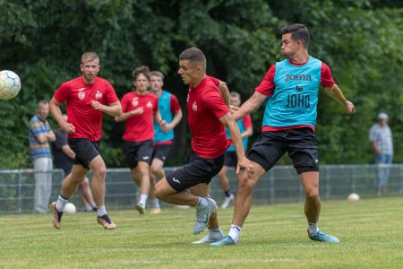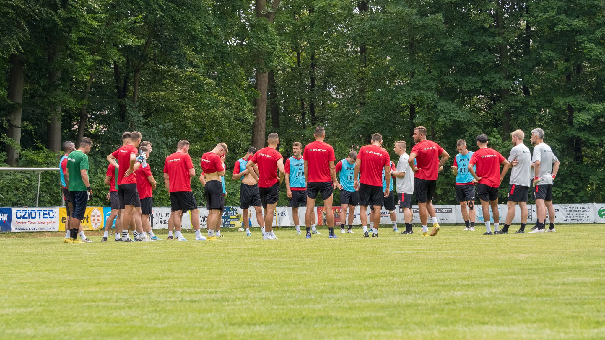 Moritz Rosenberg (Wadenbeinbruch) und Jannik Bandowski (Kreuzbandriss) fallen nach wie vor aus und werden erst während der neuen Spielzeit wieder eingreifen können. Dass die beiden Kicker fehlen war bereits klar und umso mehr freuten wir uns, dass viele neue Gesichter mit dabei waren. Niklas Brandt, Mike Eglseder, Flynn Schönmottel, Oliver Daedlow, David Vogt, Jorik Wulff und Manassé Eshele waren allesamt voll mit dabei und konnten unseren Fans die ersten Eindrücke bieten. Neben unseren bereits fest verpflichteten Kickern waren auch vier Probetrainierer mit dabei. Torhüter Ibrahim Suaib (Dynamo Schwerin), Lasse Denker (MTV Gifhorn), Miran Pehlivan (Preußen Münster) und Ty Walker (Greuther Führt) waren mit dabei und hinterließen ebenfalls die ersten Eindrücke.