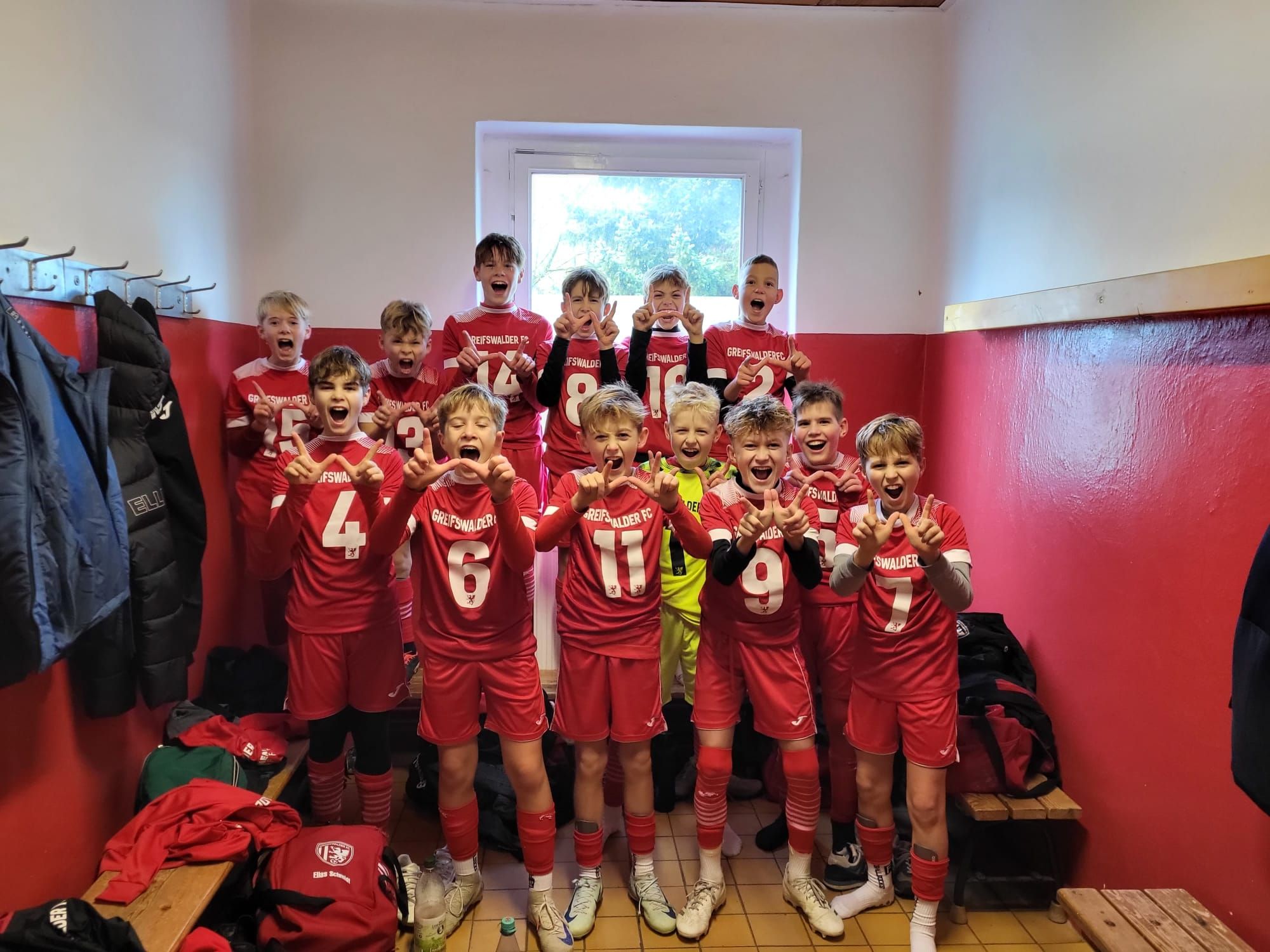 In der vergangenen Woche gab es lange Gesichter bei unserer U13. Mit einem 1:5 unterlag das Team beim 1. FC Neubrandenburg und wollte natürlich eine Reaktion zeigen. Das ist ihnen letztlich auch eindrucksvoll gelungen. Es ging gegen den FC Anker Wismar und auch, wenn das Team zu Beginn noch etwas ungeduldig agierte und einige gute Situationen im letzten Drittel zu ungenau auflöste, kamen von Beginn an keine Zweifel auf, dass es an diesem Tag eine eindeutige Nummer werden würde. Schon früh wurde der Gegner im Aufbauspiel gestört und ließ hinten nichts anbrennen, sodass es zur Pause bereits 6:0 für unsere Greifenkids stand. Im zweiten Abschnitt versuchte man dann möglichst vielen Akteuren Spielpraxis zu geben und wechselte viel durch. So wurde es nochmal etwas unruhig und Wismar kam auf 6:3 heran. Danach fing sich das Team aber wieder und erhöhte am Ende noch bis auf 11:3! Damit bleibt die Truppe auf dem zweiten Rang in der Verbandsliga.