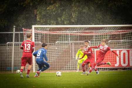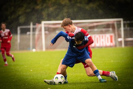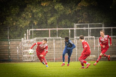 Unsere U15 empfing am sechsten Spieltag der Regionalliga Hertha 03 Zehlendorf auf unserem Hauptplatz. Bei kaltem Wind und starkem Regen gerieten die Jungs von John-Philipp Bruhns leider nach einer Minute bereits in Rückstand. Zehlendorf nutzte die Verunsicherung aus und legte in der vierten Spielminute nach. Im Anschluss daran fing sich unsere U15 allerdings und auch, wenn die Berliner weiter den Ton angaben, verteidigte unser GFC das gut weg. Mit zunehmender Dauer traute sich unser Team dann auch immer mehr nach vorne und hatte ein paar Offensivaktion. Mitten hinein in dieser Phase erzielte Zehlendorf dann jedoch das 3:0.