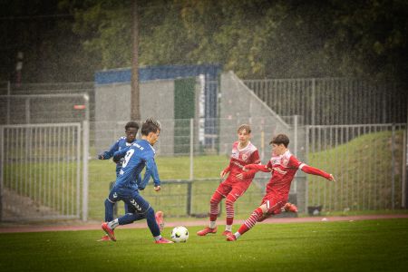 Die Trainer fanden jedoch die richtigen Worte und unsere U14 kam stark aus der Pause. Dennoch dauerte es bis zur 55. Minute, bis Maxime Möhring endlich den erneuten Führungstreffer erzielte. Nur eine Minute später klärte Cody Müns auf der Linie und leitete damit einen Angriff ein, der in einem Elfmeterpfiff mündete. Den Strafstoß verwandelte erneut Moritz Beyer, der mit dem Schlusspfiff auch noch den 4:1-Endstand herstellte. Durch den Sieg sprang das Team auf den ersten Tabellenplatz und ist als einziges Team der Liga ohne Niederlage bisher, sauber!
