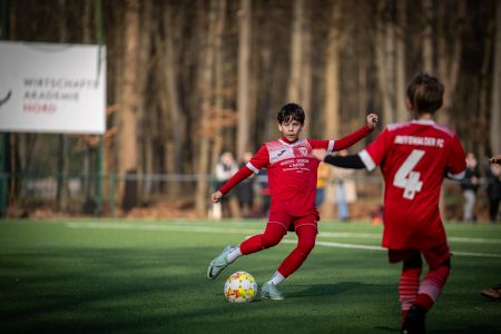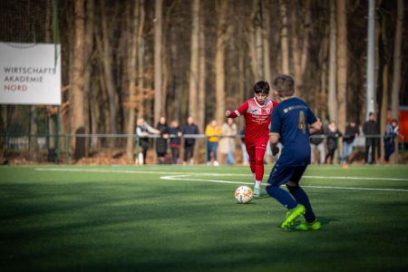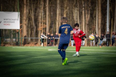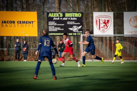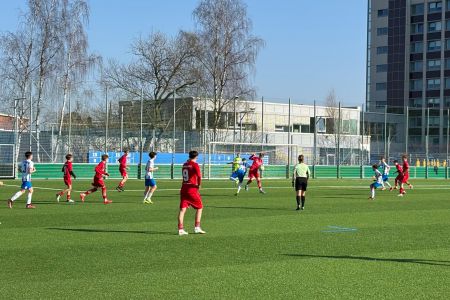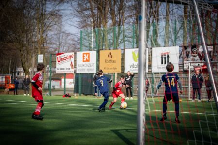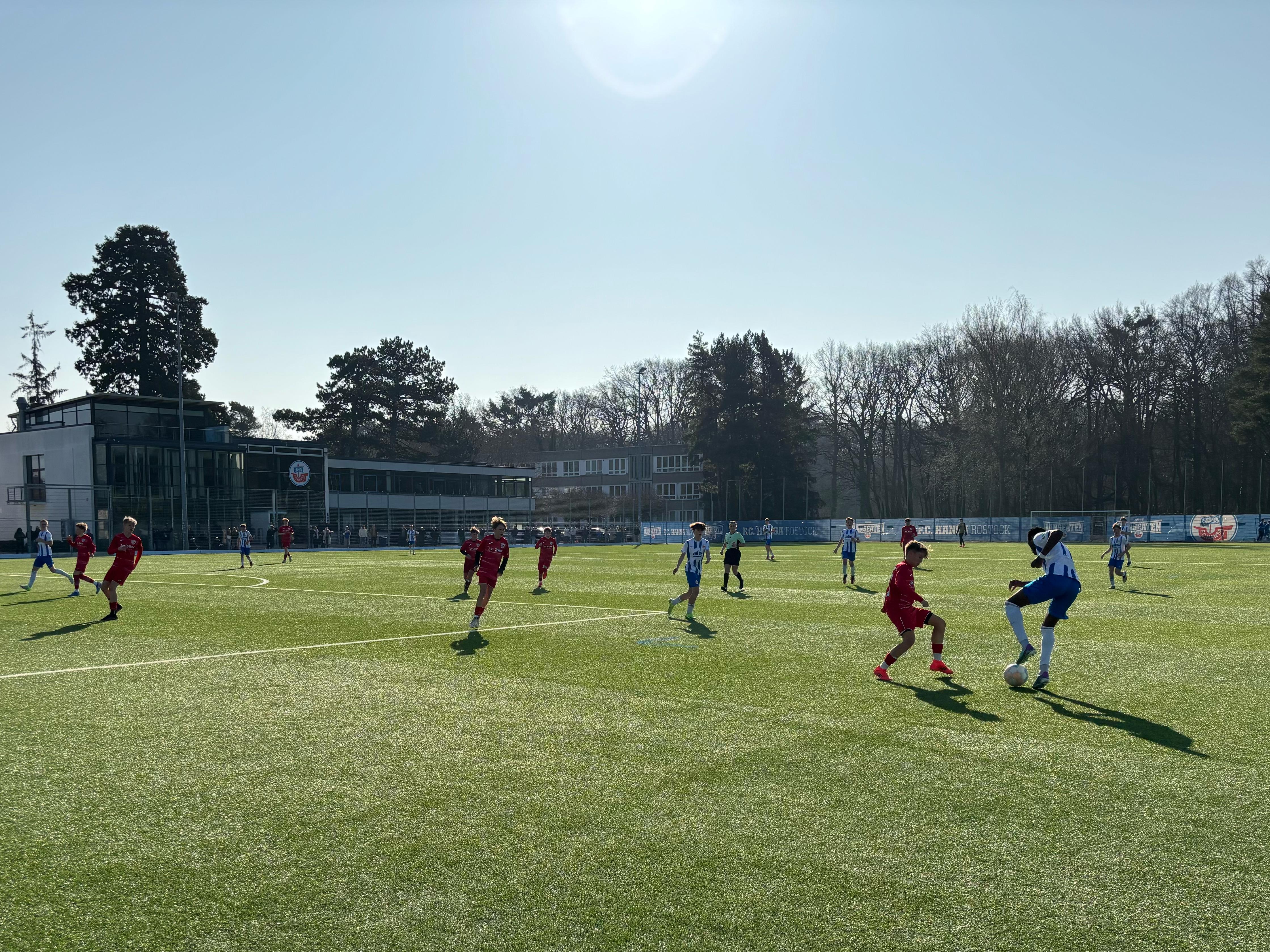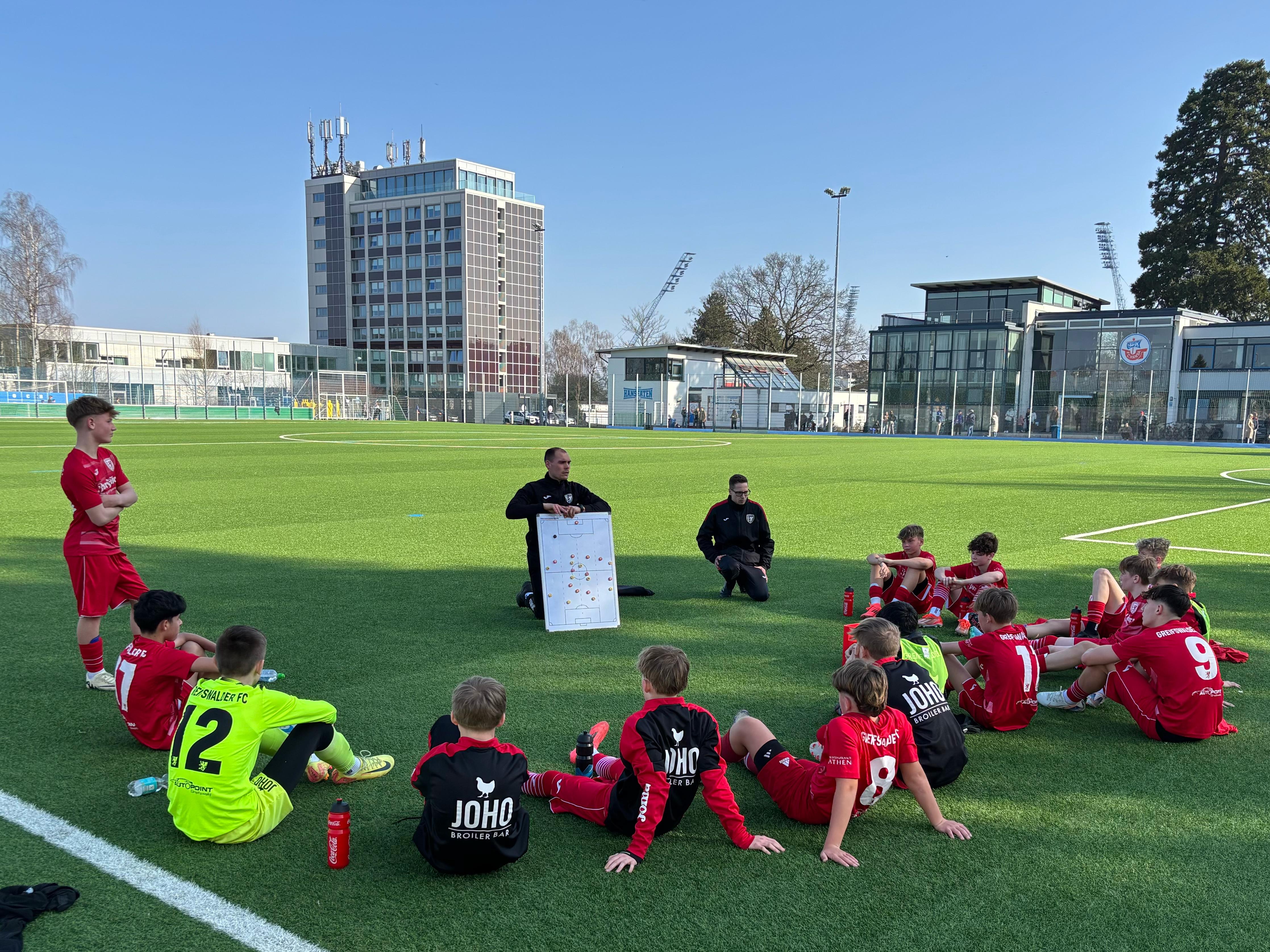 Am Samstag war unsere U14 zu Gast bei der gleichaltrigen Jugend des FC Hansa Rostock. Unsere Jungs kamen sehr gut ins Spiel und erkannten ab der ersten Minute die freien Räume, die uns Hansa gerade in den Anfangsminuten ließ. Bereits in der 7. Minute nutzten wir eben diese in einem schnellen Vorstoß. Mit einer schnell-präzisen Passstafette kombinierten wir uns durch die Abwehr der Kogge und konnten frei vorm Tor am Keeper vorbei einschieben. Hansa am Boden, wir oben auf! 30 harte Minuten folgten auf diese schnelle Führung für unsere U14. Hansa drückte nun ununterbrochen, wir hielten aber stets dagegen, zeichneten uns mit Biss und Kampf um jeden Zentimeter aus! Hansa wurde zunehmend ungeduldiger und ruppiger! Wir retteten jedoch die Führung in die Pause, was ein Kraftakt in Halbzeit eins. Trainer John-Philipp Bruhns, bis hierhin äußerst zufrieden, schwor die Jungs auf eine noch härtere und kräftezehrende 2. Halbzeit ein. Und so kam es auch, Hansa weiter sehr körperlich, stellenweise auch überzogen. Etliche harte Zweikämpfe gipfelten leider in einem üblen Foul an unserem Innenverteidiger Titus. Er stürzte nach einem unnötigen Schubser in den Rücken unglücklich und verletzte sich schwer an der Schulter, Schlüsselbeinbruch! Ein herber Verlust, den es zu kompensieren galt! Hansa weiter mit Druck, nutzte die Umstellung in unserer Abwehr und konnte in Minute 45 per Weitschuss von links ins lange Eck sehr sehenswert ausgleichen.