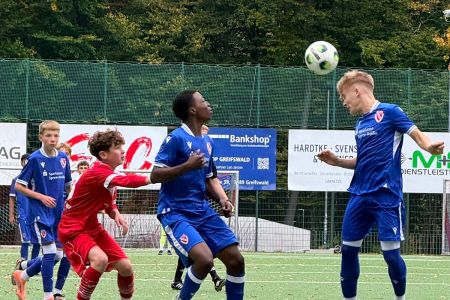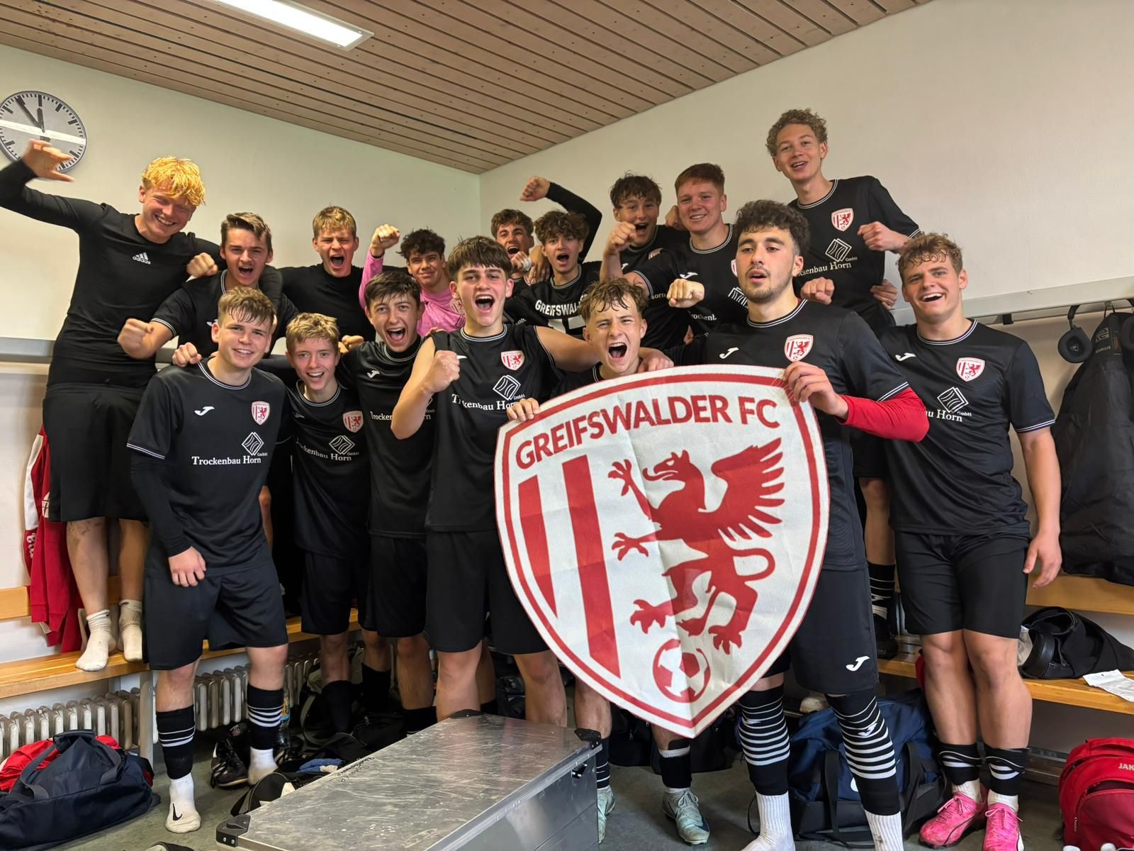 Auch unsere U17 konnte das Weiterkommen in Stralsund sichern. Das Team von Marco Kröger siegte dank Hugo Bredlow und eines Doppelpacks von Finn Luca Höft nach Rückstand mit 3:1 beim TSV 1860.