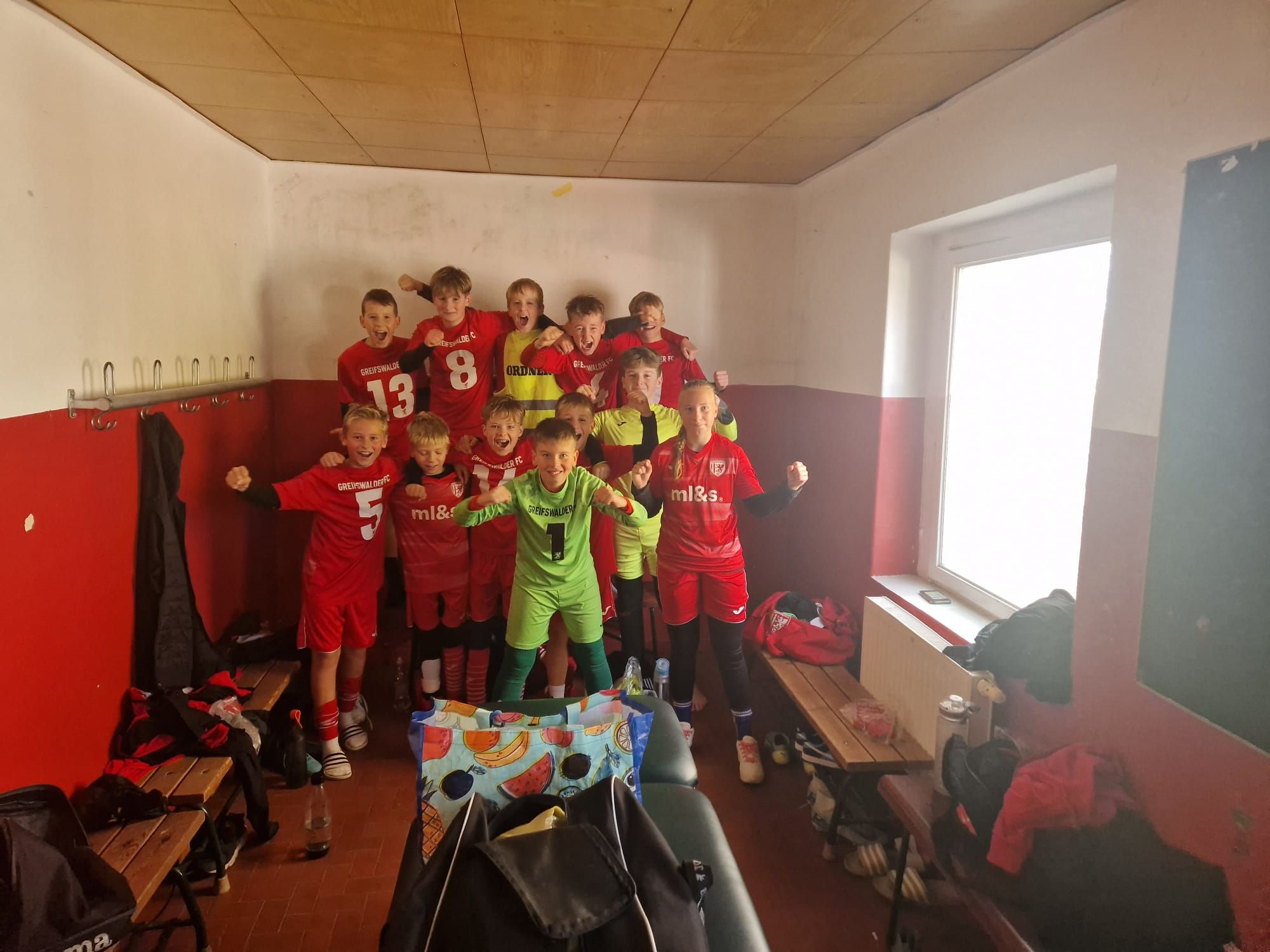 Unsere U13 machte sich dieses Mal zu einem Hallenturnier auf den Weg. Beim Krebs-Cup in Rostock traten unsere Greifenkids gegen Teams aus der Gastgeberstadt, Stralsund, Stendal und Wismar an. Gespielt wurde im Modus Jeder-gegen-Jeden und es kristallisierten sich relativ schnell zwei Favoriten auf den Turniersieg heraus, die bereits in ihrem jeweils ersten Spiel aufeinandertrafen. Unsere U13 trennte sich dort von Hansa Rostock mit 0:0. Fortan war es im Prinzip ein Kopf-an-Kopf-Rennen zwischen den beiden Teams, um die Tabellenspitze. Beide holten immer wieder Siege, sodass die Entscheidung wirklich erst im allerletzten Spiel des Turnieres fallen sollte. Unsere U13 traf dort auf den ESV Lok Stralsund und bewies Nervenstärke. Nicht nur gewann das Team, es erzielte auch die nötige Anzahl an Toren, sodass sie schlussendlich mit der nur um einen Treffer besseren Tordifferenz den Titel nach Greifswald holten. Herzlichen Glückwunsch! Unsere U19 hatte leider kein so gutes Wochenende, unterlag beim 1. FC Neubrandenburg mit 1:7, wohingegen unsere U12 gegen den TSV 1860 Stralsund II klar mit 8:0 gewann. Sauber!