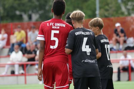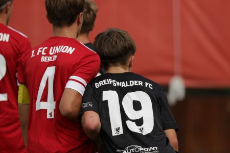 In der Pause gab es aufmunternde Worte vom Trainer an die durch die Urlaubszeit noch immer dezimierte Mannschaft. Leider gab es direkt nach Wiederanpfiff die nächste Ohrfeige für das Team. Binnen gerade mal drei Minuten legten Union Berlin nach und erhöhte auf 7:0. Eine halbe Stunde war da noch zu spielen und so schien sich ein absolutes Debakel anzudeuten. Aber weit gefehlt, die U15 unseres Greifswalder FC biss sich wieder rein und schaffte es sogar den Ausfall von Torhüter Julian Pichowiak, der sein Team bis dahin einige Male durch starke Paraden pushen konnte, gut wegzustecken. Auch der eingewechselte Mika Holtz konnte an die Leistung nahtlos anknüpfen und sich zwischen den Pfosten einige Male auszeichnen. Am Ende stand dennoch leider die zweistellige 0:10-Pleite auf dem Tacho. Gegen ein Team wie Union Berlin war dies aber fast zu erwarten. Die Mission lautet auch weiterhin: Klassenerhalt. Am kommenden Samstag empfangen unsere Jungs dann den JFV Neuseenland auf dem Hauptplatz unseres Volksstadions. Kommt unbedingt vorbei und unterstützt die Jungs auf der Jagd nach wichtigen Zählern!