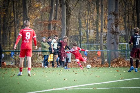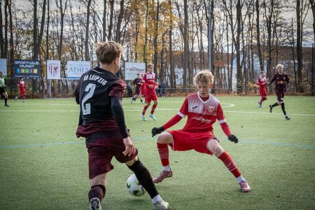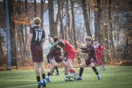 Ein mittlerweile relativ großer Name des deutschen Fußballs stattete unserem Volksstadion am Samstag einen Besuch ab. Gemeint war dabei nicht nur Trainer Tim Sebastian, sondern auch der Verein, dessen Logo er auf der Brust trug: RB Leipzig. Die U15 der roten Bullen traf auf unsere gleichaltrige Regionalligatruppe und wo viele eine deutliche Nummer erwarteten, entwickelte sich ein Schlagabtausch auf Augenhöhe. Insbesondere in der ersten Hälfte war nichts zu sehen von einem Klassenunterschied. Beide Teams hatten gute Ansätze, die Gäste letztlich nur eine so richtig gute Chance. Mit einem 0:0 ging es für das Team von John-Philipp Bruhns also in die Pause.