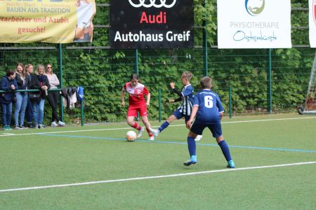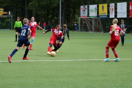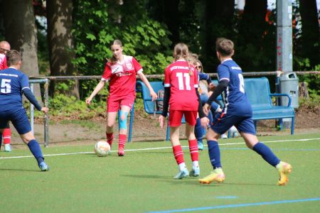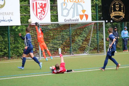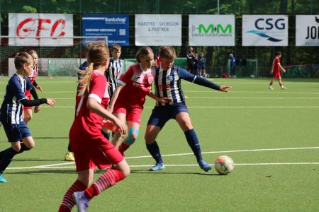Ebenfalls am Samstag waren unsere Kleinsten an der Reihe. Im letzten offiziellen Heimspiel ihrer ersten Kreisliga-Saison empfing die Truppe von Jule Krakow die Jungs des SV Loitzer Eintracht. Im Hinspiel hatte das Team eine starke Leistung geboten und war damals vor allem in der ersten Halbzeit mindestens ebenbürtig. Dieses Mal hingegen lief es in der ersten Hälfte nicht sonderlich rund. Die Mädels brauchten wie in den letzten beiden Spielen wieder einige Minuten, um richtig ins Spiel zu finden und erneut fehlte ein ums andere Mal der nötige Mut in den Zweikämpfen. Auch im Anlaufen wurde leider nicht bis zum Ende durchgezogen und so wurde der Gegner nur selten richtig unter Druck gesetzt. Die beste Chance hatte hierbei Anna-Lena Schumann, die den Torwart weit vor seinem Kasten sah und einen Lupfer probierte, den Ball aber leider vorbeisetzte. Im zweiten Durchgang sah das dann aber schon wieder deutlich besser aus. Nun schafften es die Kleinen, sich immer wieder Torgelegenheiten herauszuspielen und kombinierten sich teilweise sehr sehenswert durch die gegnerischen Abwehrreihen. Insbesondere Lara Timm brachte sich immer wieder gut in Position und zeigte sowohl in der Mitte, als auch auf ihrer rechten Seite eine starke Leistung. Nur im Abschluss fehlte an diesem Tag das nötige Glück. Sowohl Lara Timm als auch Anna-Lena Schumann trafen jeweils den Pfosten, weitere Schüsse verfehlten das Ziel nur knapp oder der Loitzer Torhüter war zur Stelle. Unsere Aushilfstorhüterin Skadi Zschieschang verhinderte ebenfalls einige schon sichere Gegentore, konnte häufig dann aber doch nichts machen. Zu clever spielten die Loitzer ihre Chancen aus und so kam am Ende leider eine klare 0:16-Niederlage zustande. Am kommenden Samstag geht es dann zum Auswärtsspiel beim FC Landhagen, Anpfiff dort ist um 11 Uhr.