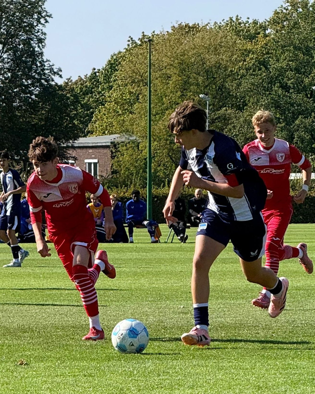 Nach der engagierten Leistung unserer U15 gegen Dynamo Dresden am vergangenen Wochenende, wollte das Team von John-Philipp Bruhns auch bei Hertha BSC eine gute Performance abliefern. Leider sollte es jedoch ein rabenschwarzer Tag für die Jungs werden, die der übermächtigen Truppe der „Alten Dame“ an diesem Tag leider in allen Belangen unterlegen war. Nach elf Minuten stand es bereits 0:3 und die Köpfe gingen nach unten. Danach fielen bis zur Pause leider noch sieben weitere Gegentreffer, sodass es schon zweistellig war. Damit gab sich Bruhns nicht zufrieden und hielt eine brennende Halbzeitansprache, die die Jungs auch nochmal kitzelte. Sie setzten einige Nadelstiche und versuchten etwas in Richtung Gegnertor, Hertha blieb letztlich aber noch eine Nummer zu groß. Fünf weitere Gegentore gab es noch, die es aufzuarbeiten gilt. Kommenden Samstag geht es dann erneut gegen Hertha, dann aber die aus Zehlendorf. Unsere Jungs spielen dann wieder auf unserem Westplatz, darum kommt sehr gerne vorbei!