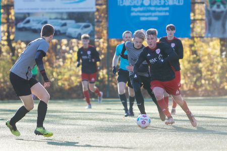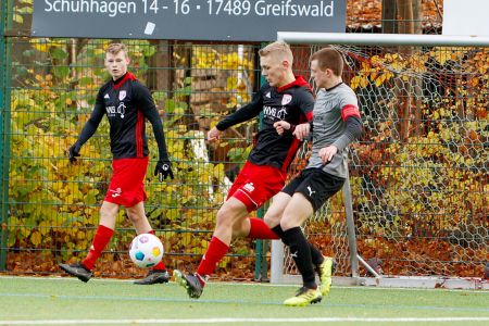 Was war das nur für ein Wetter am Sonntag? Neben der Kälte kamen auch noch Unmengen an Regen vom Himmel und machten den Tag zu einem, an dem man lieber zu Hause bleiben und eingekuschelt einen Tee genießen wollte. Nicht aber so unsere Fußballer und Trainer! Die waren von morgens an im Volksstadion und zeigten, aus welchem Holz sie geschnitzt sind. So zum Beispiel unsere U8 von Domenik Thrun und Niklas Mieß. Die war schon um 9 Uhr im Einsatz und bekam es mit der U9 des VFC Anklam zu tun. Eine vor allem körperlich schwere Aufgabe für unsere Greifenkids. Spielerisch war es jedoch ein toller Auftritt, immer wieder wurden schwierige Situationen sehr klug gelöst und richtige Entscheidungen getroffen. Das fehlende Spielglück verhinderte, dass unsere U8 einen Sieg mitnehmen konnte, ein 1:1 gegen die bislang ungeschlagenen Anklamer war trotzdem aller Ehren wert! So auch der deutliche Erfolg unserer U10 nur eine Stunde später. Die Truppe von Stefan Lange und Jan Wöller traf auf die Zweitvertretung des HFC Greifswald und tat sich zunächst mit den Begebenheiten schwer. Zur Halbzeit stand es dennoch 3:1 für uns. Auch in der zweiten Halbzeit kam das Team nicht so richtig rein und spielte eher den Gegner, als das eigene Spiel. Lange und hohe Bälle bestimmten zeitweise das Geschehen. Nichtsdestotrotz waren die individuellen Fähigkeiten der Jungs gut genug um sich am Ende einen klaren 11:1-Sieg zu sichern. Mehr als die Hälfte der Treffer gingen dabei auf das Konto von Jonas Buse. Sehr erfreulich war auch der 4:1-Sieg am Tag zuvor von unserer U19. Sie traf auf Anker Wismar und trat erstmals mit Moritz Nicolaus als Kapitän auf. Und der bedankte sich direkt mal mit einem Doppelpack, stark! Tom Voß und Leon Gehrt erzielten die weiteren Treffer für das Team von Felix Gorgas, das nun auf dem 4. Platz der Verbandsliga steht.