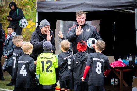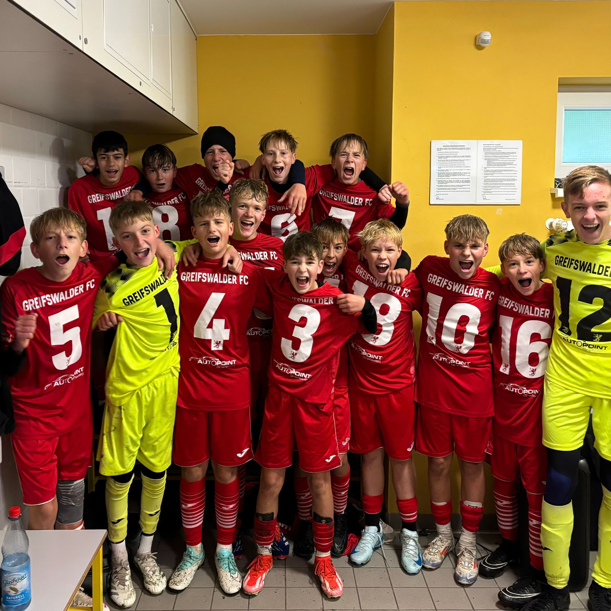 Doch nicht nur vorne klappte es nach Plan. Auch defensiv wusste unser Greifswalder FC in diesem Spiel zu überzeugen und stand Torgelow/Ueckermünde ordentlich auf den Füßen. Gegnerische Torschüsse wurden rigoros unterbunden oder stark pariert. Hier und da kam aber auch das Glück dazu, denn mehrere Male scheiterten die Gastgeber am Aluminium. Die endgültige Entscheidung brachte in der Schlussphase erneut ein Standard. Ein Freistoß von halbrechts vor dem Strafraum konnte von Titus Barnekow zum 3:0-Endstand ins kurze Eck versenkt werden. Unsere U14 steht damit also in der nächsten Runde, genau wie unsere U15, die sich bereits unter der Woche deutlich mit 10:0 bei der JSG Dargun/Neukalen durchsetzen konnte.