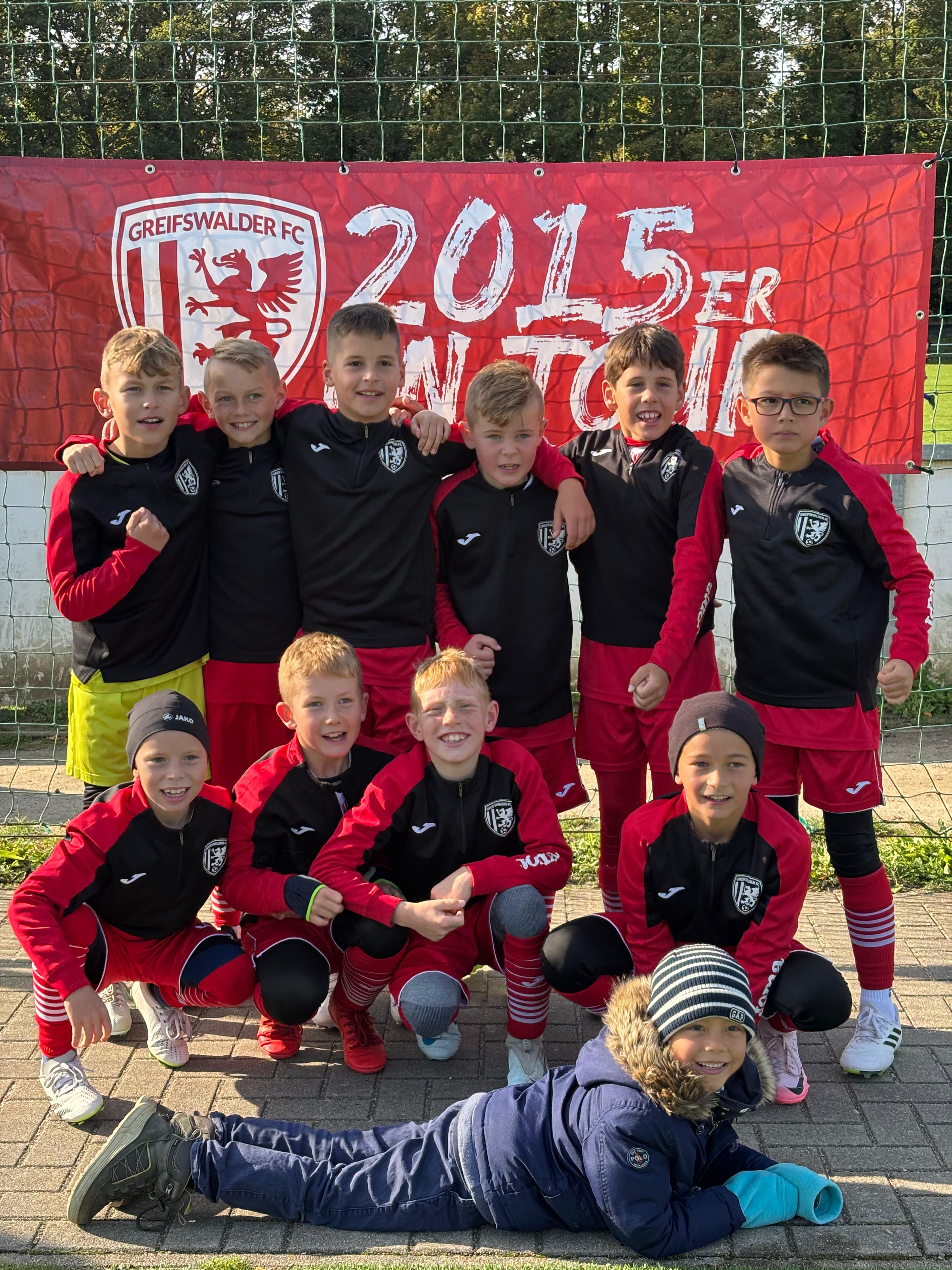 Für unsere U10 und unsere U11 war es wieder eine volle Woche. Beide Teams hatten neben eines Pflichtspiels auch noch einen Leistungsvergleich zu absolvieren. Los ging es dabei für die U10 von Danny Martens und Ben Tornow bereits am vergangenen Montag. Die Mannschaft fuhr in der Kreisliga zum FC Landhagen und erlitt dort tatsächlich die erste Saisonniederlage. Nach der wirklich starken Leistung beim Turnier am Tag der Deutschen Einheit unterlag die Truppe gegen den älteren Jahrgang letztlich deutlich mit 0:7. „Es fehlte an allen Ecken und Enden. Die Jungs ließen Kampfgeist und Laufbereitschaft komplett vermissen. Aber auch das gehört im Sport dazu, Mund abputzen und weiter“, bilanzierte Martens anschließend. Weiter ging es am Samstag beim Leistungsvergleich des Rostocker FC. Dort sah es dann auch schon wieder ganz anders aus. Gegen die U10 und U11 des RFC sowie der U10 des Förderkader René Schneider wussten die Greifenkids wieder vollends zu überzeugen, begeisterten Trainergespann und die mitgereisten Eltern und konnten sich dieses Mal mit dem ersten Platz belohnen. Richtige Reaktion!